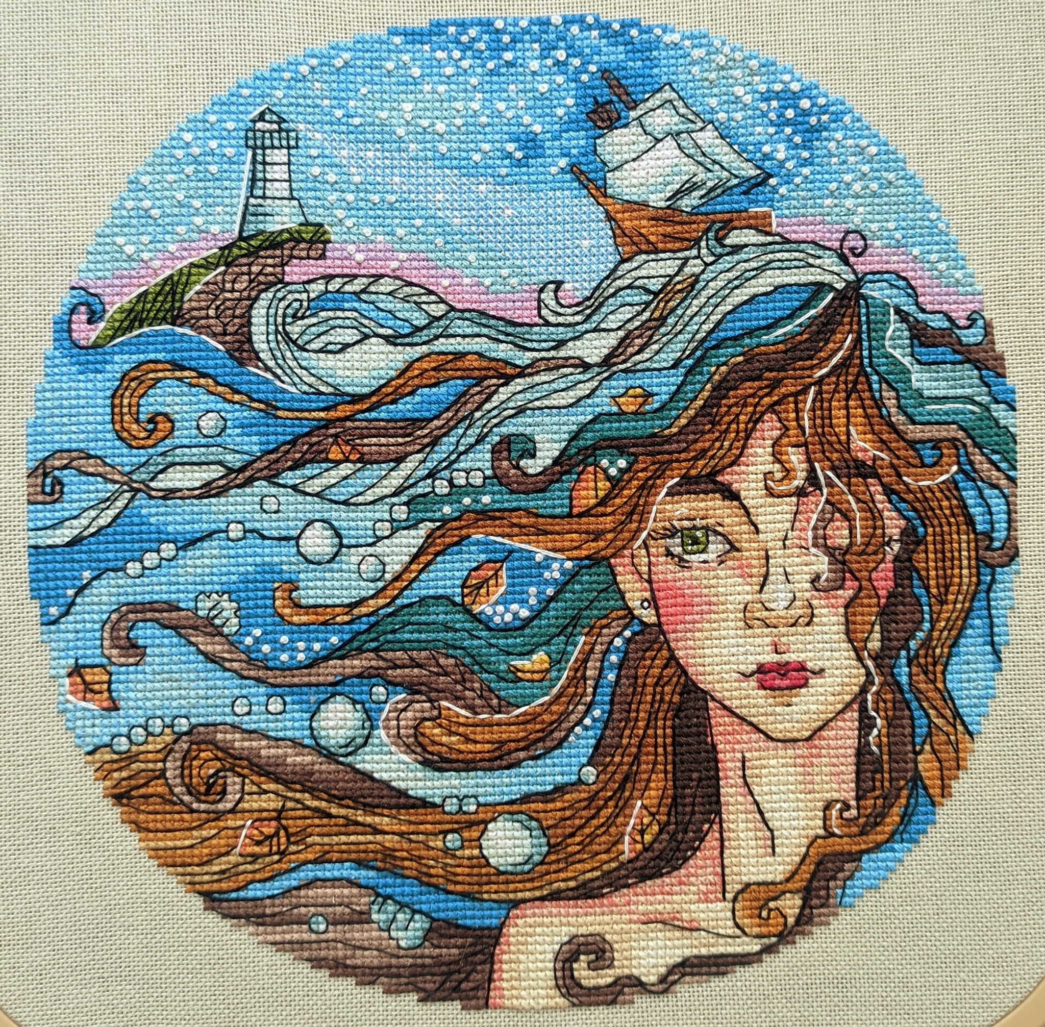 Вышито по набору от Золотого руна "Мечты о море".