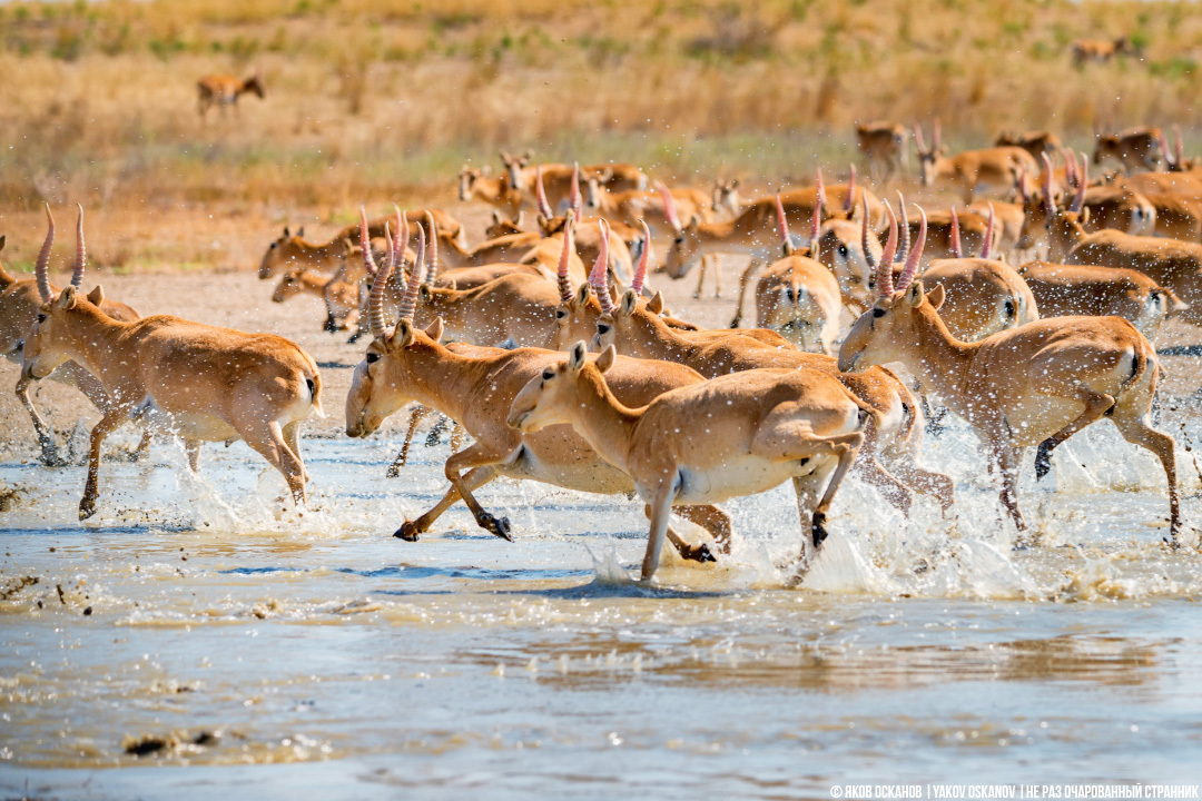 Дело было в Калмыкии. В заповеднике "Чёрные земли". Мы приехали туда в июле, чтобы испытать свою удачу и поснимать животных в жаркое время года на водопое. У артезианского источника, где происходила съёмка, был установлен скрадок (небольшой деревянный домик), где мы и сидели в засаде.
