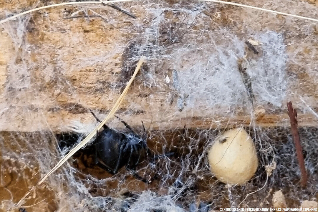 К тому же, хоть я и не знал как выглядит её кокон, саму хозяйку я сразу узнал. Это была одна из чёрных вдов – каракурт. Обычно они с красными пятнами на теле, но бывают и полностью чёрные экземпляры.
