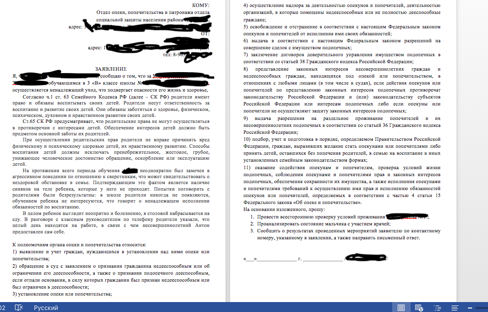 Сажусь за компьютер, набираю тексты заявлений в органы опеки и полицию, затем всё это на подпись тёте и далее в органы.
