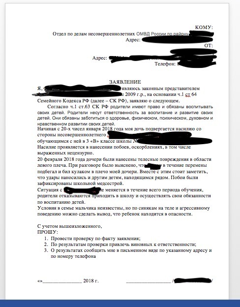 — Слушай, там у тёти Оли проблема — в классе мальчик всех колотит, сейчас уже стал бить девочек. Дочка не хочет в школу идти уже неделю.