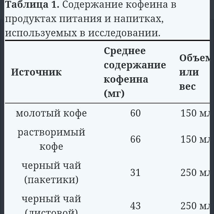 В исследовании много интересных моментов, коротко перечислю некоторые. Кофеин был и в бутылках с чаем. Самое низкое содержание было в зелёном чае. При этом чайные листья чёрного чая и пуэра содержали кофеина больше, чем молотый кофе. В эспрессо больше кофеина, чем в растворимом, но его количество всё равно безопасно, ибо ниже рекомендованных 400 мг, то есть 4-5 чашек в день вполне можно безопасно осилить. Хотя эспрессо содержит высокую концентрацию кофеина, из-за небольшого объема, общее количество кофеина в эспрессо ниже, чем в других традиционных способах приготовления кофе.