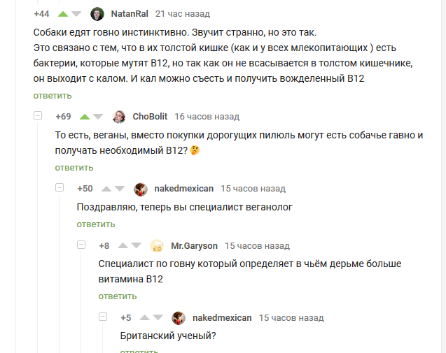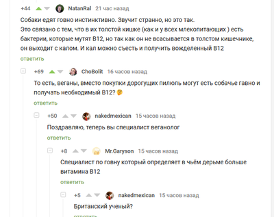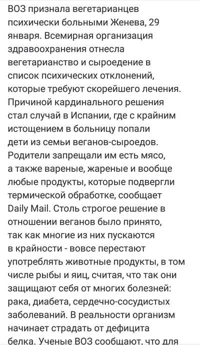 - если вы отказываетесь от мяса по каким-то своим соображениям – дело ваше, никто вас не обвиняет, просто следите за поступлением необходимых витаминов, и, ради всего святого, прекратите нести хрень про то, что ваше питание имеет какие-то преимущества;