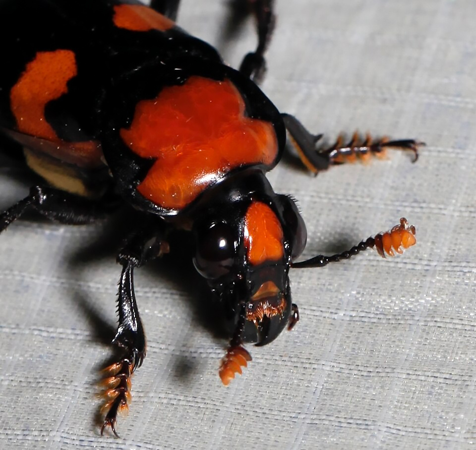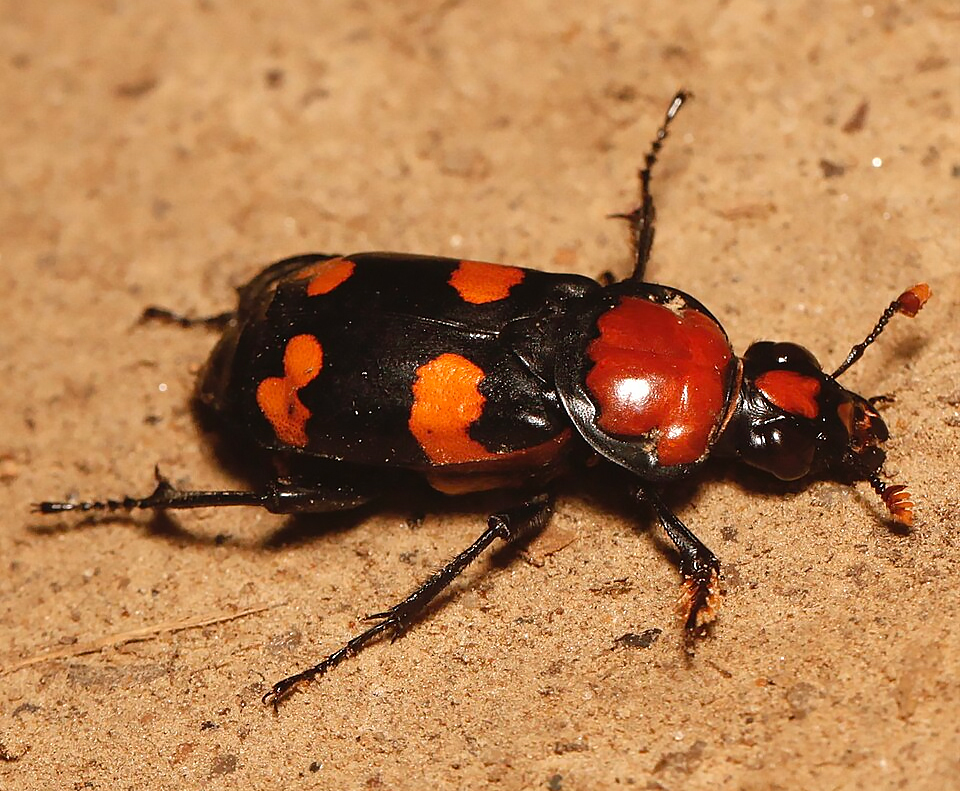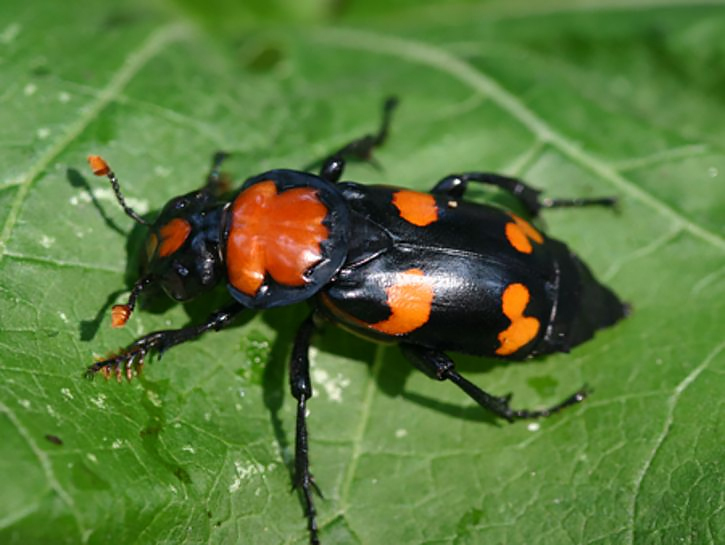Это Nicrophorus americanus – американский жук-мертвоед. Постепенное исчезновение этих насекомых с лица земли началось ещё в 1920-х годах, но энтомологи заметили потери только в 1980-х. Обеспокоенные этой тенденцией, учёные начали широкомасштабные исследования, в результате которых выяснилось, что ранее процветавший в 35 штатах США и 3 провинциях Канады жук сегодня выживает только на небольших по площади пятнах, составляющих примерно 10% его исторической территории.