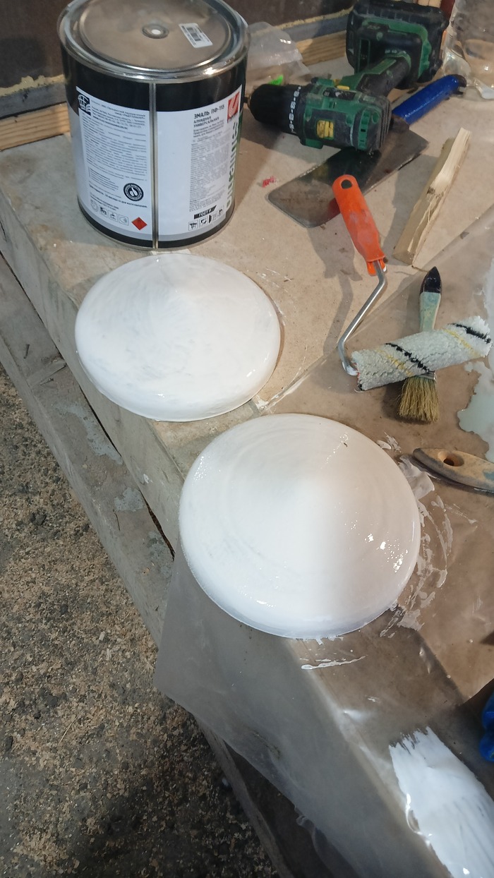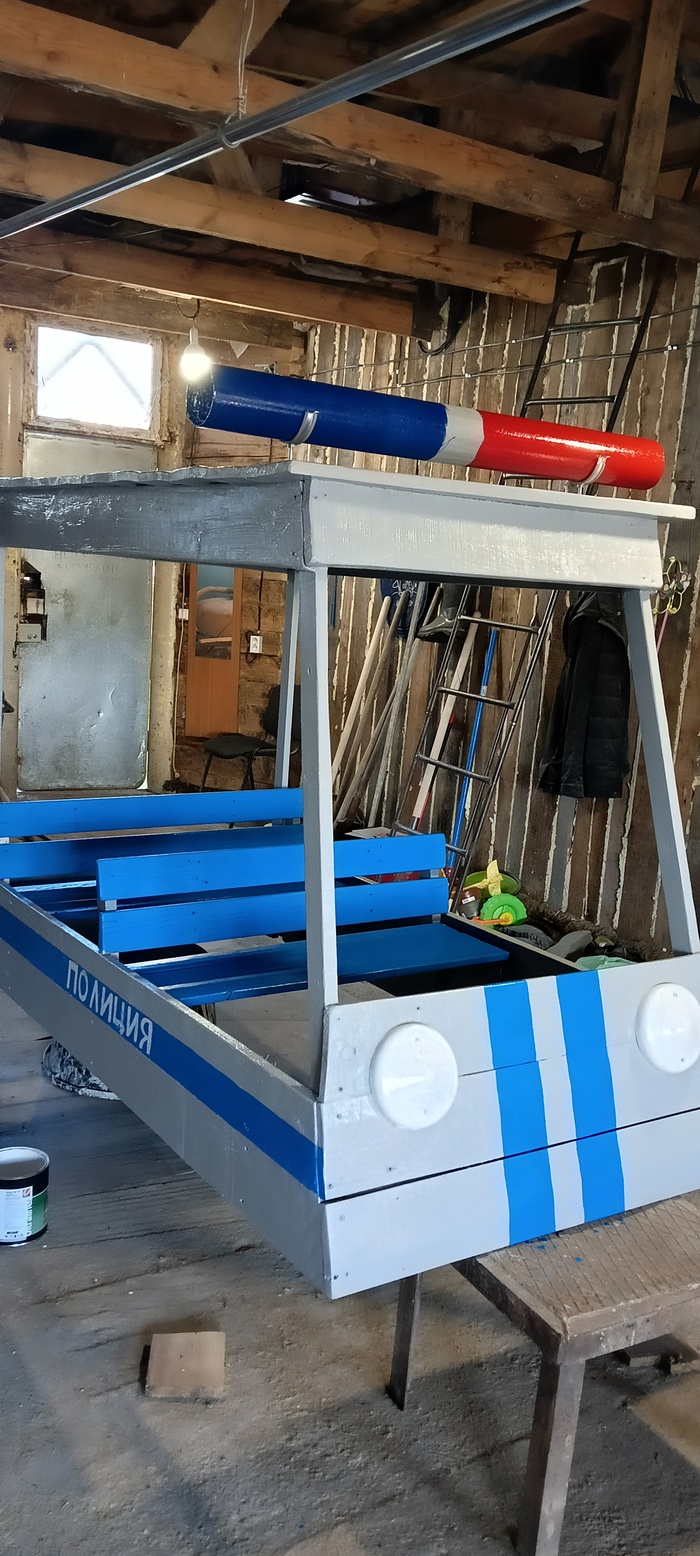 Сначала планировалась скорая помощь с ведром-мигалкой. Закупил ведро серой краски, большую банку белой, литровую банку красной. Кисточки и приступил к окраске. Когда задал фоновый цвет понял, что получается ментовской бобик а не скорая и купил еще синей краски)