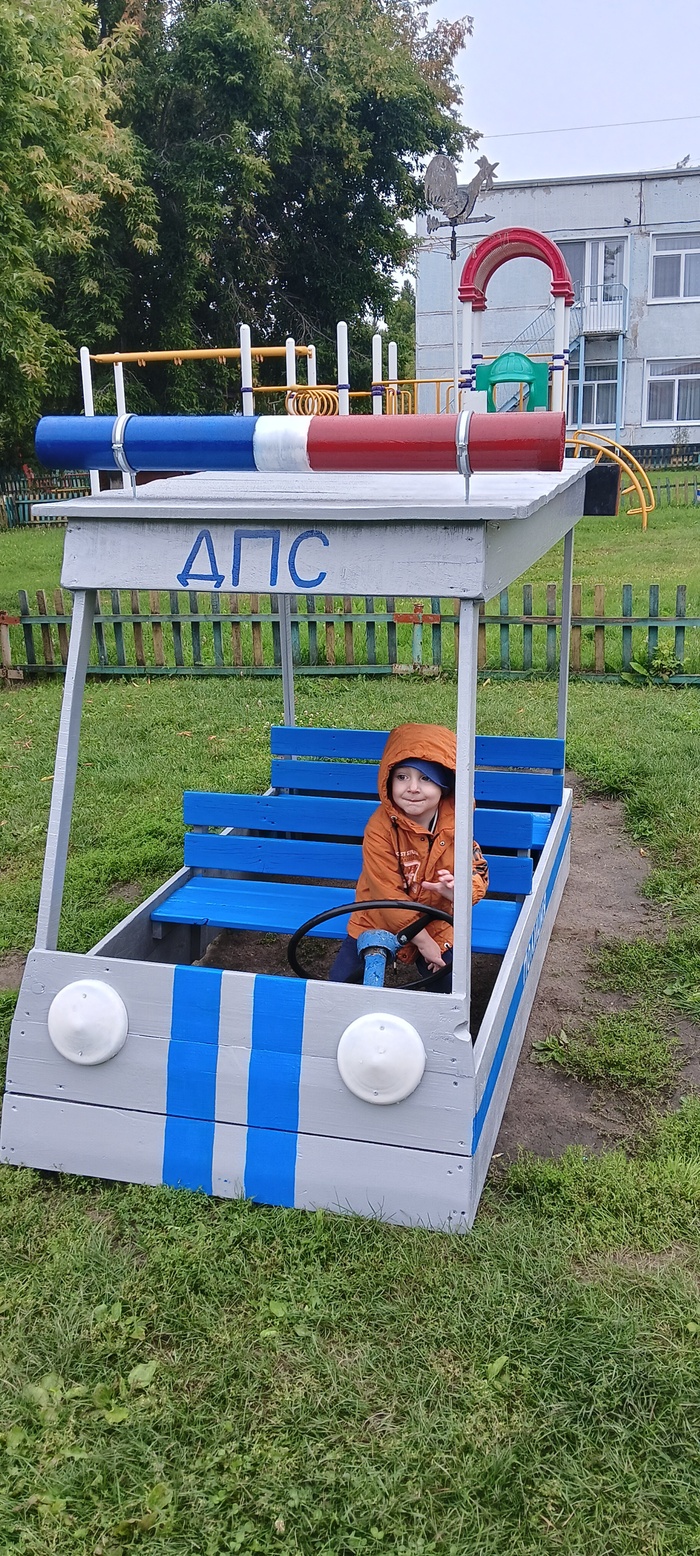 Дочка с сыном ходят в садик. На участке для прогулок был вкопан руль в землю, дети подставляли стульчик и "тарахтя" губешками рулили типа на машине:). Воспитатель попросила меня сделать им лавочку, что бы можно было ездить на воображаемой машине компанией.