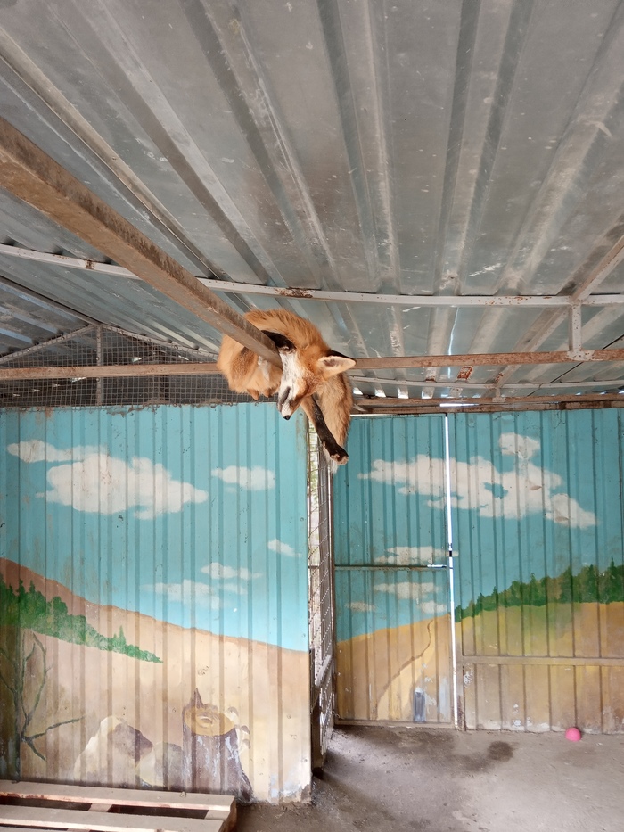 В Евпатории в зооуголке в парке аттракционов - лиса любит спать под потолком. Интересно как она забирается туда?