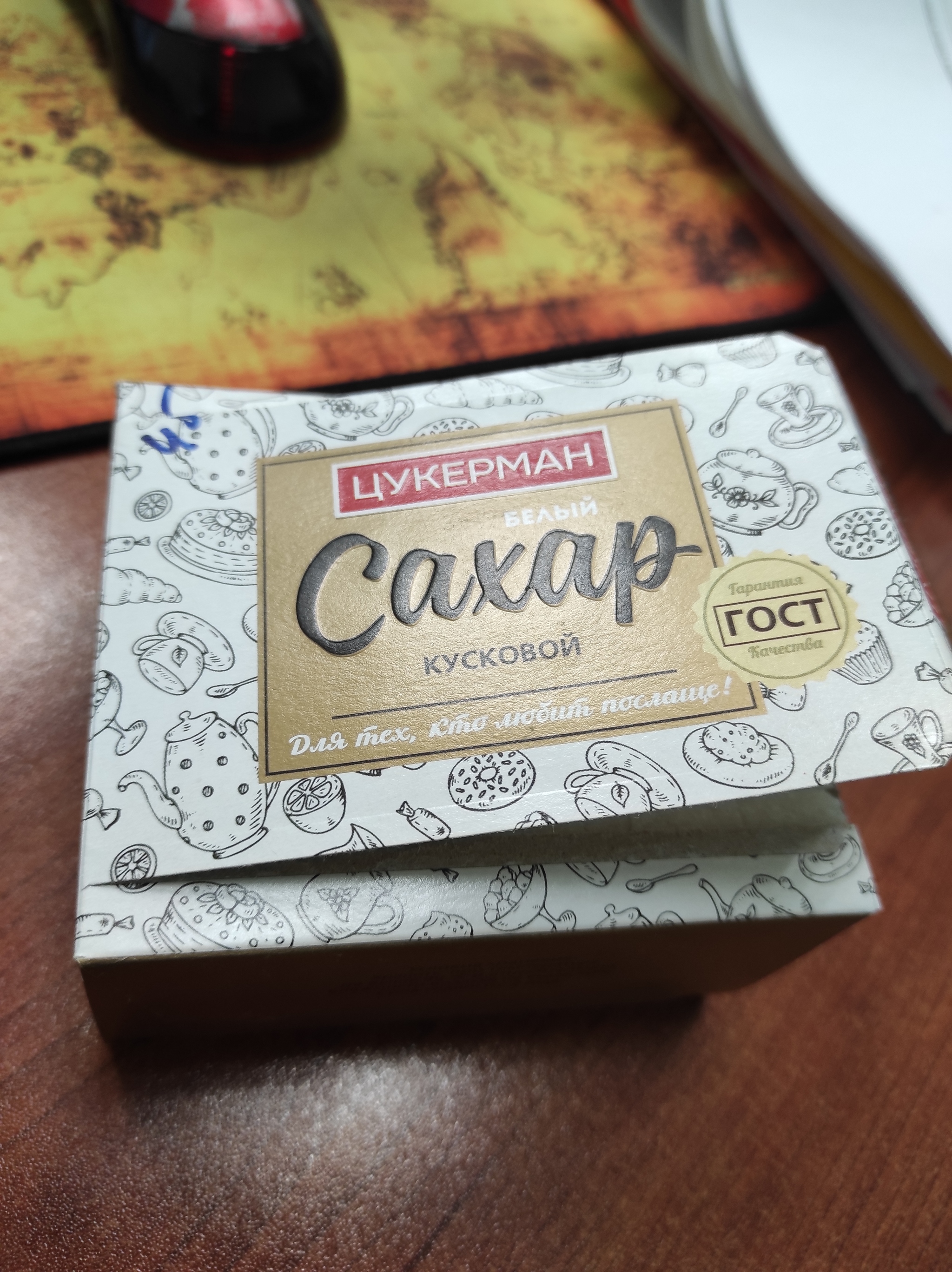По работе сегодня пришлось помотаться по городу. Вроде все дела сделал, нужно ехать в офис. Да и кофейку бы не помешало уже. Тут вспоминаю, что сахар в офисе закончился. Ага, нужно купить. Как раз рядом магазинчик продуктовый. Зашёл, купил первую попавшуюся пачку рафинада. Приезжаю в офис, девочки как раз чайник согрели. Достаю сахар - хмм, не видал такого ещё. И название-то какое еврейское.