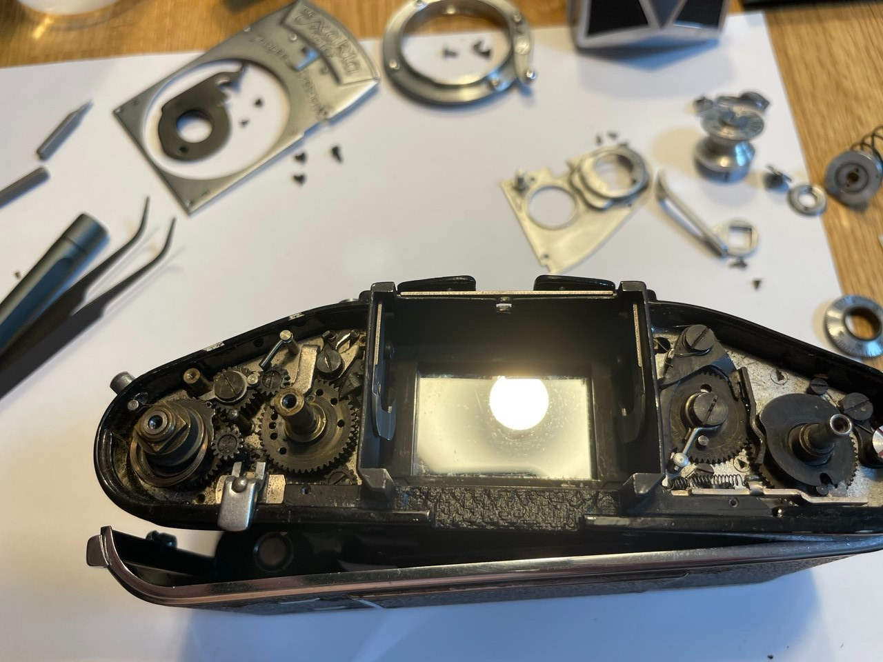 Итоговый результат такой, собственно внешне ничего не изменилось, зато работает) Хотя я поменял не родные и испорченные винтики с донорской экзакты, так же почистил призму и линзы визира. В очередной раз чуть помучался с узлом медленных выдержек и автоспуска, постоянно забываю как там его собирать) Но механизм гениален в своей изящности. Удивительно даже что он один такой в своем роде. Хотя как часто кому-то в целом потребуется выдержка до 12секунд?)