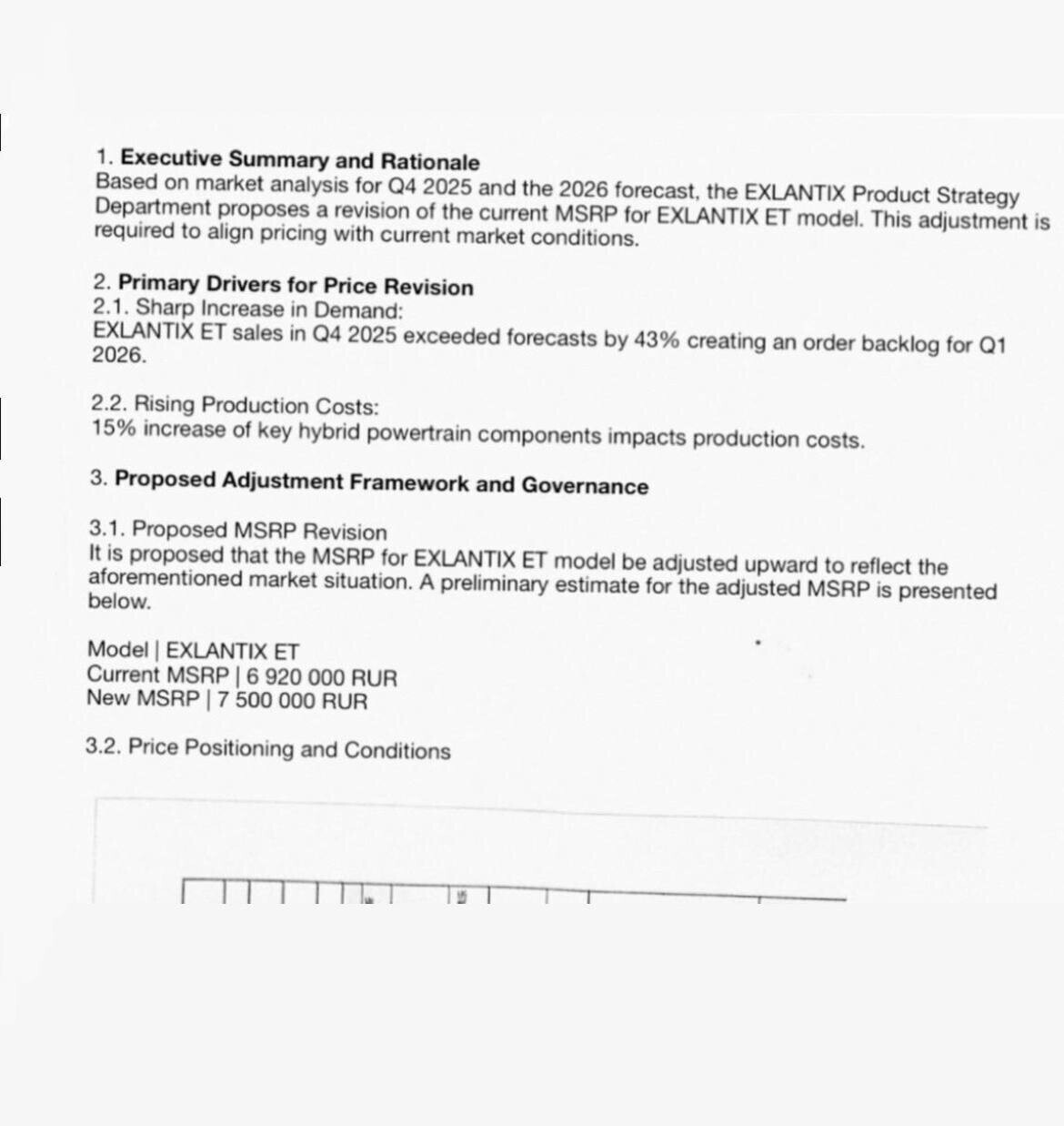 В IV квартале 2025 года фактические продажи EXLANTIX ET превысили внутренний план на 43 %, из‑за чего сформировался лист ожидания на I квартал 2026 года. Кроме того, на ценообразование повлиял рост себестоимости: стоимость ключевых компонентов гибридной силовой установки увеличилась на 15 %.