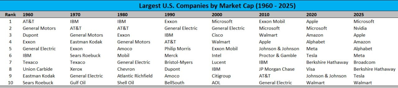 В 2010 году Exxon был крупнейшей позицией в S&P 500. Сегодня она не входит даже в топ-15. Какой бы сильной ни казалась компания, технологии, инновации и конкуренция рано или поздно придут к ее порогу
