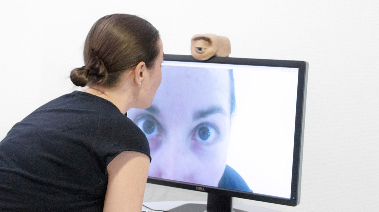 Eyecam умеет моргать подобно настоящему человеческому глазу, а веки динамически адаптируются к движениям глазного яблока: когда камера смотрит вверх, верхнее веко широко открывается, а нижнее полностью закрывается.