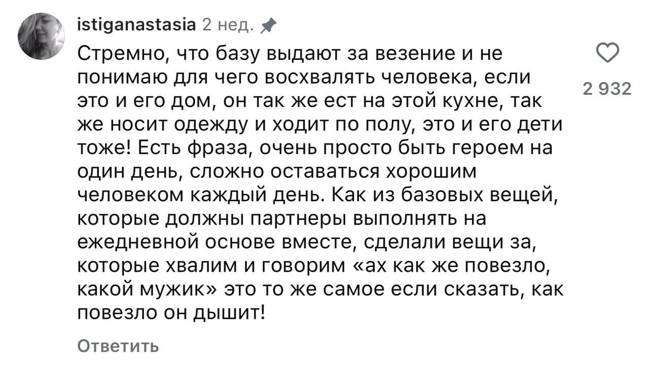 «Стремно, что базу выдают за везение. Это ведь и его дом, и его дети. Хвалить за то, что должно быть нормой? Это как благодарить за то, что человек дышит».