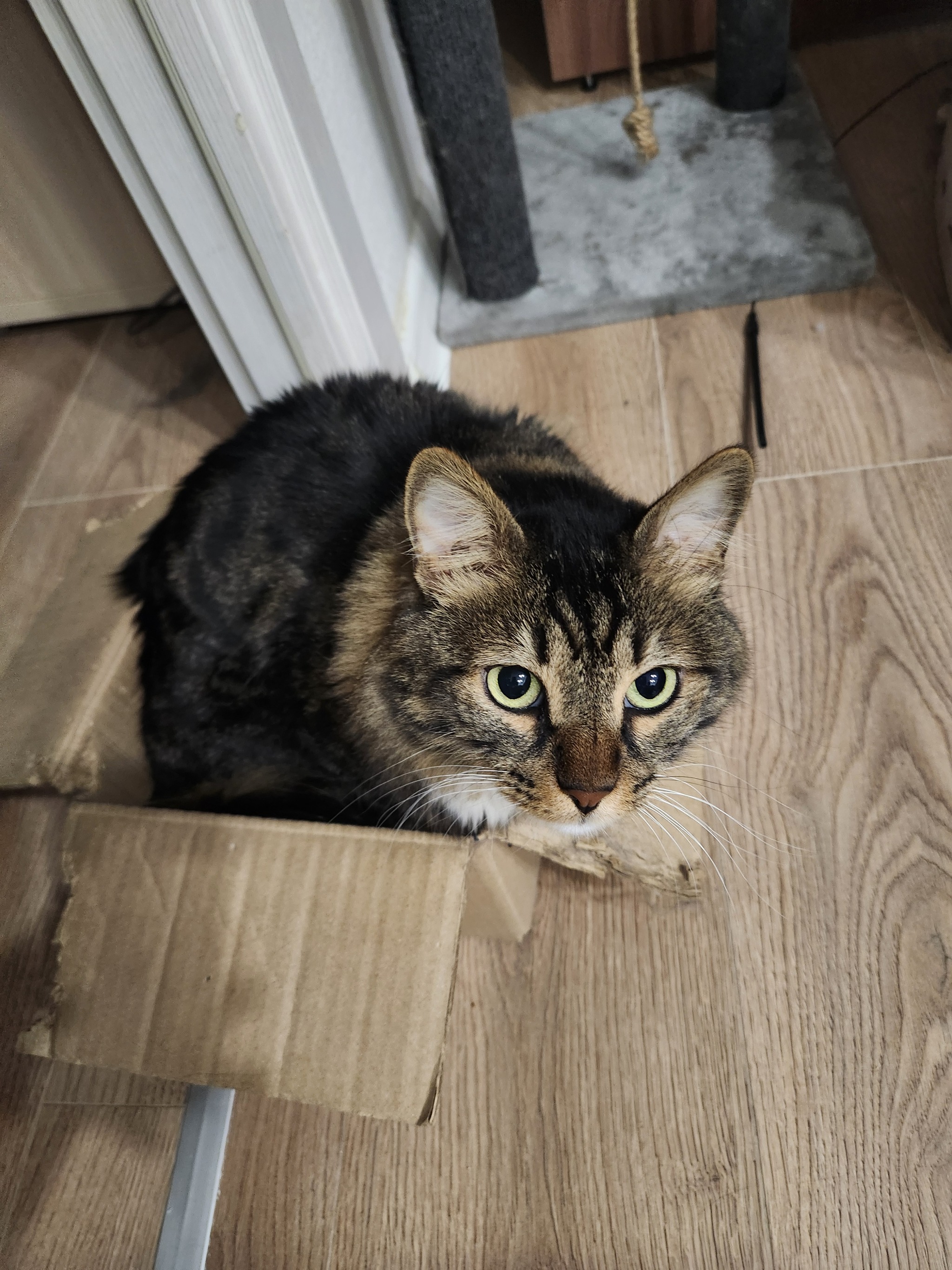 Этим коробкам много лет. Были ещё задолго до кота. 2 из под тв, 1 от саундбара, 1 из под индукционной плиты, 2 коробки просто есть. Что-то приносили давно. Все адаптировал под кота. А ему насрать вообще