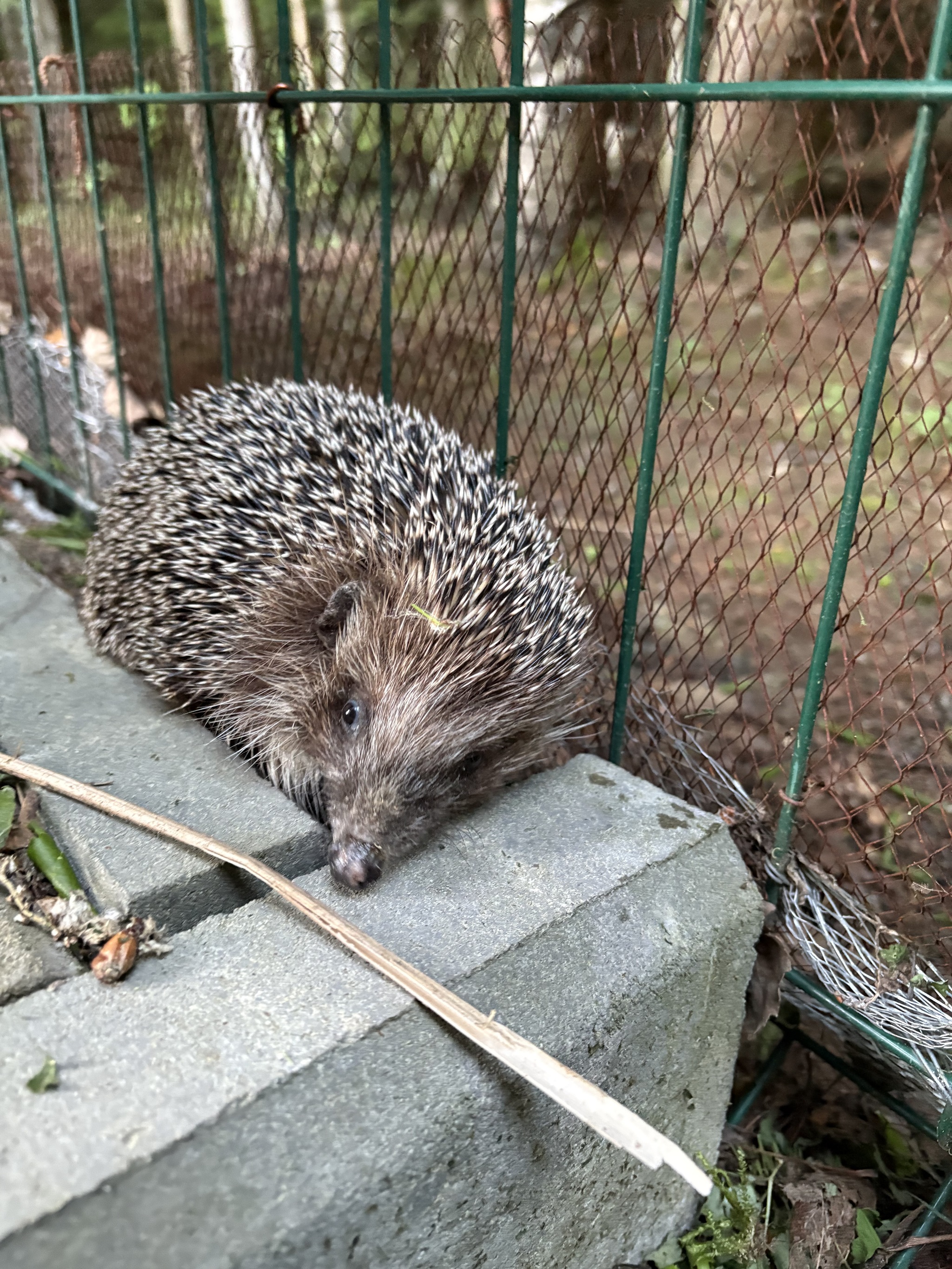 Пока Сид сидел под большой елью, Нэнси успела изучить 1/4 нашего участка, полазала под беседкой и гриль-домиком, пробежалась за изгородью из елей, по камням взобралась в небольшой цветничок. И, видно по запаху, снова и снова прибегала к уже разрушенному загону. Оба ежа жевали разные растения, многое пробовали на зуб.