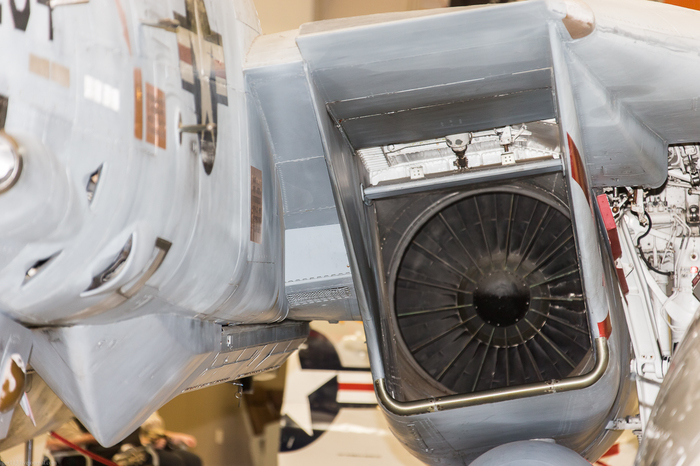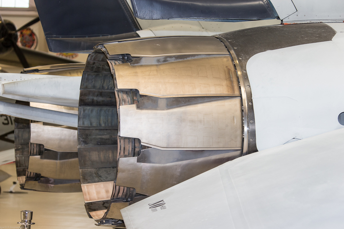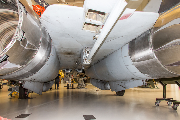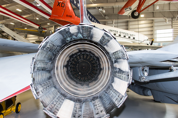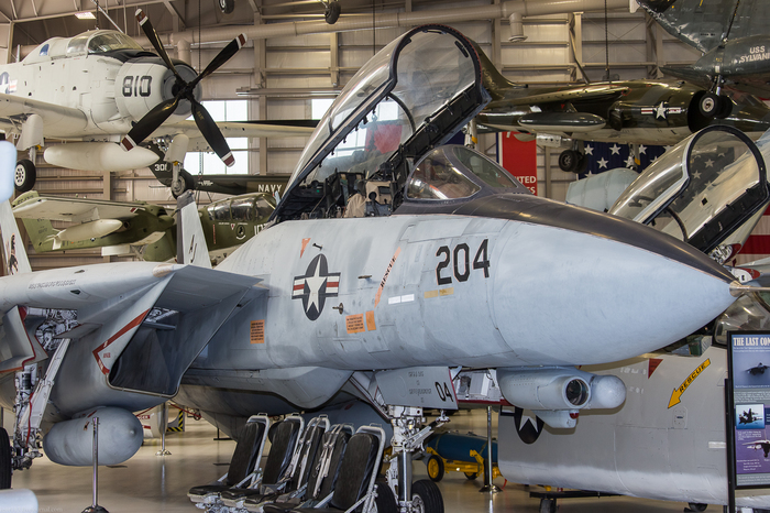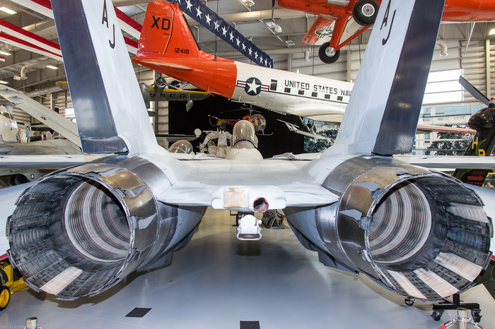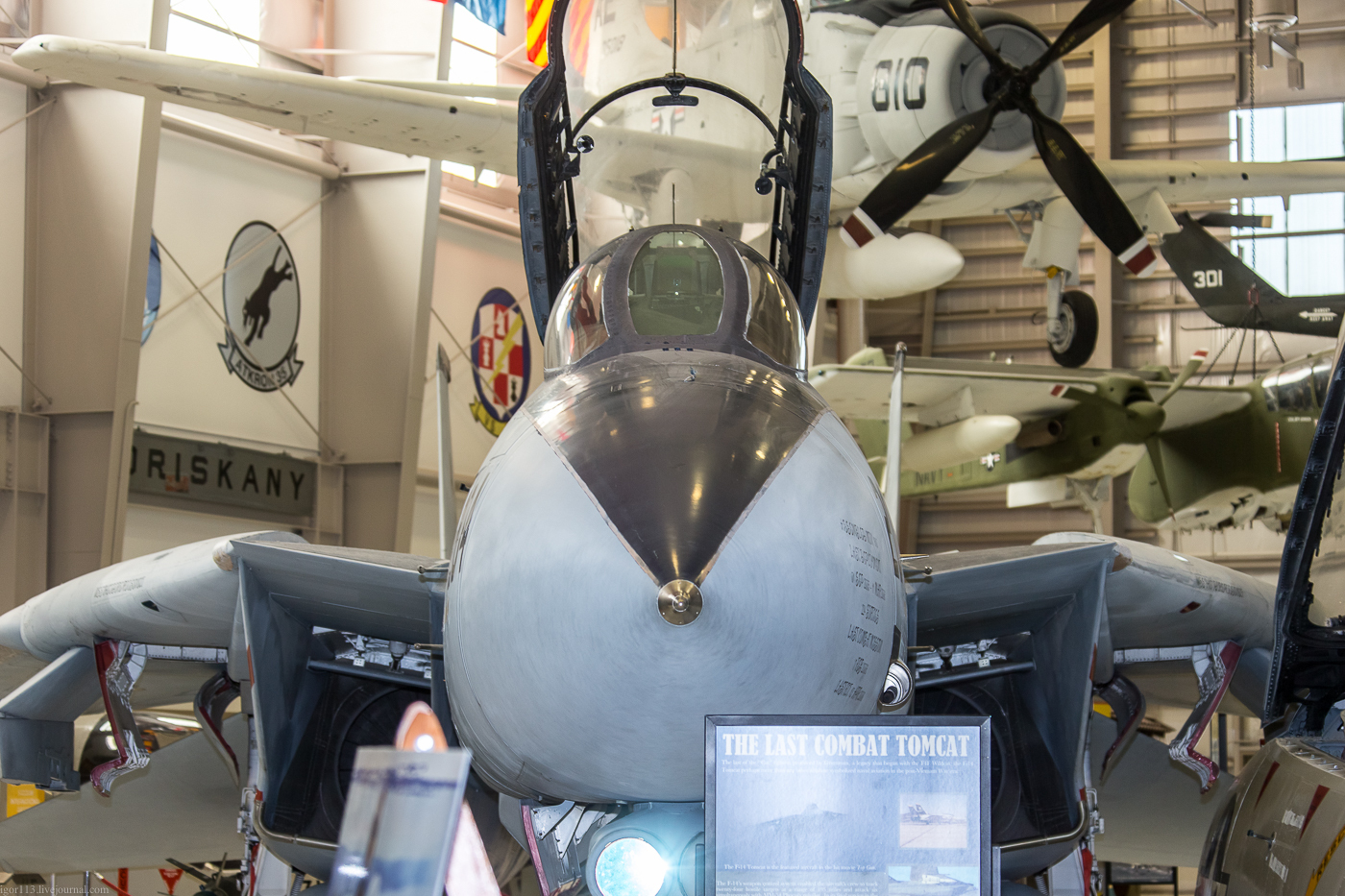Далее на фото Grumman F-14D Super Tomcat из Музея морской авиации США. Это последняя модификация F-14 с двигателями GE F110-400. Аналоговое бортовое оборудование было заменено на цифровое, также был установлен новый радар APG-71. Было построено 37 самолётов модификации F-14D, ещё 18 были переоборудованы из варианта F-14A.