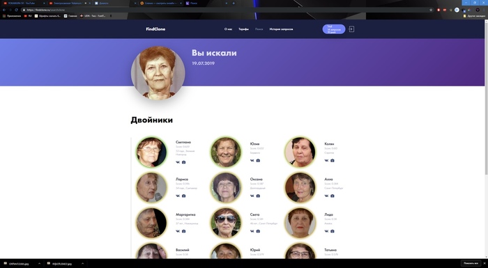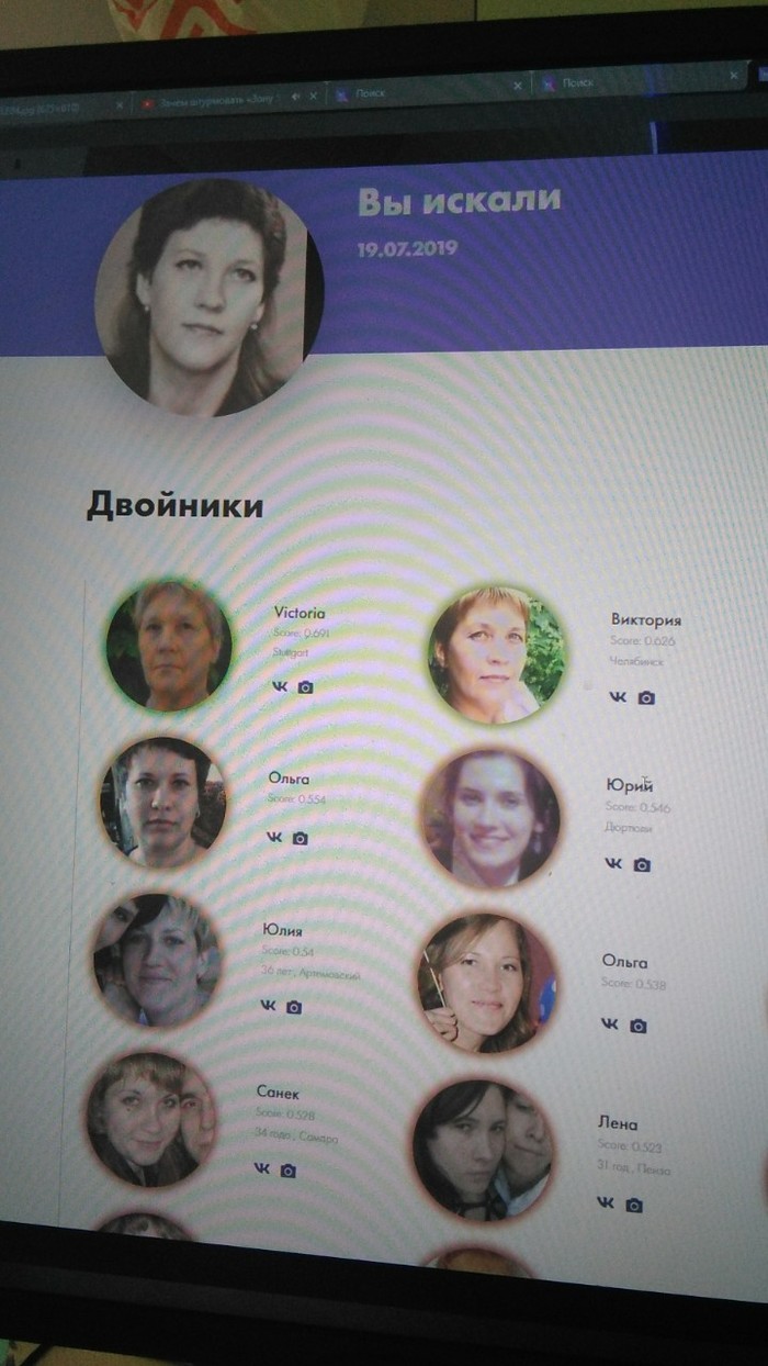 Теперь ищем меня в VK по оригинальной фотографии, где я молодая, в ВК я регистрировалась уже пенсионеркой,поэтому и интересно, найдет ли меня программа идентификации по лицу.