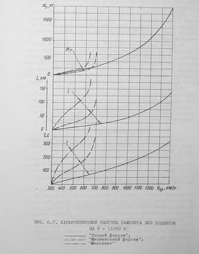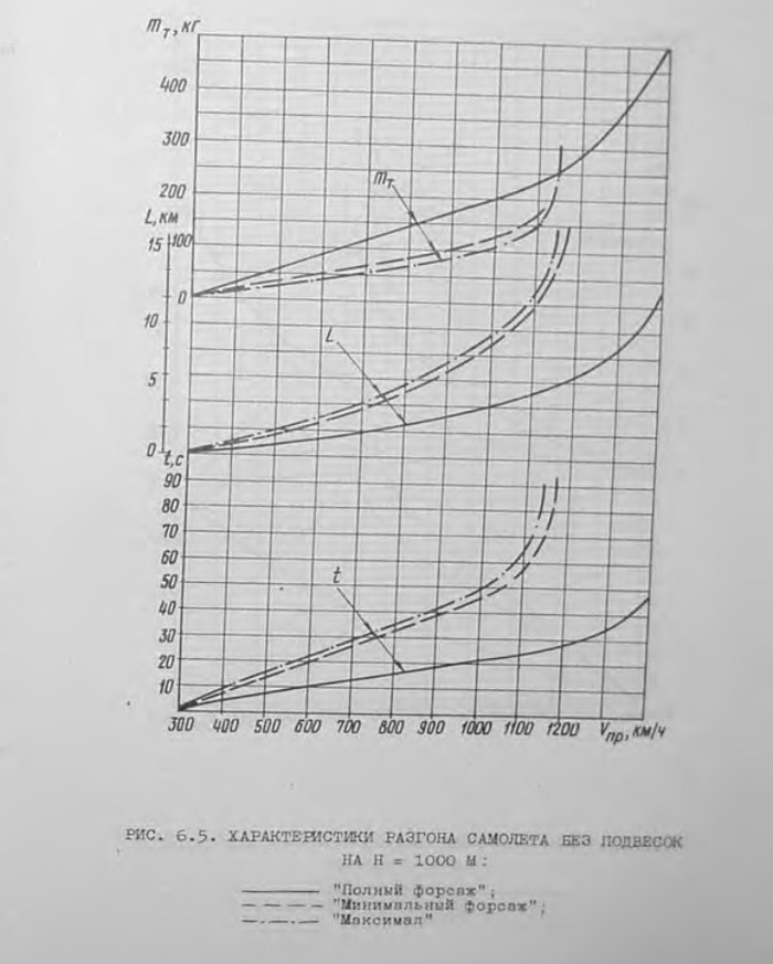 Вот, кому интересно, разгонные характеристики самолета на разных высотах. Сколько нужно секунд/кг топлива/км расстояния для разгона от 400км/ч, например, до 700км/ч. Отчетливо видно, что использование "полного форсажа" существенно улучшает скоростные возможности самолета