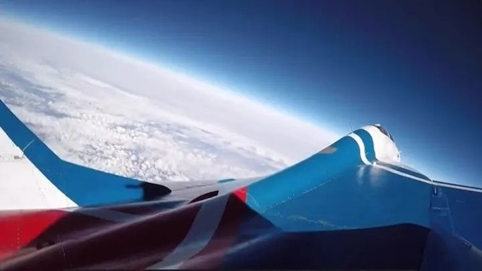 На "максимале" или "малом форсаже" самолет неспособен обогнать звук, а с использованием полного форсажа может достигнуть максимальной скорости в 2,3 раза быстрее звука! Даже с ракетами!
