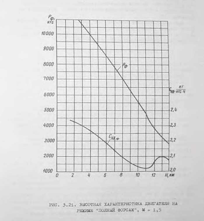 А вот вам график тяги двигателя на режиме "ПОЛНЫЙ ФОРСАЖ" миг29. Слева тяга в килограммах силы, справа высота в км.