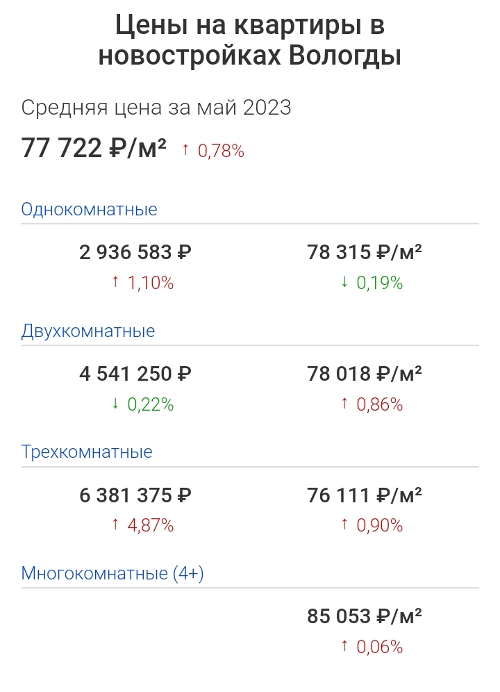 Цены в Вологде