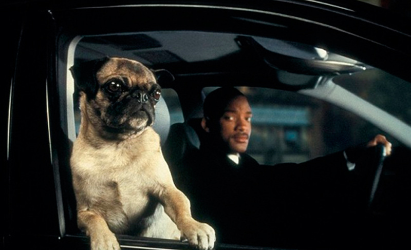 К моменту начала работы над второй частью "Людей в черном" очаровательный мопс Фрэнк, инопланетянин по совместительству, заметно состарился. Однако создатели решили не менять исполнителя роли, а просто закрасили седину на морде собаки.