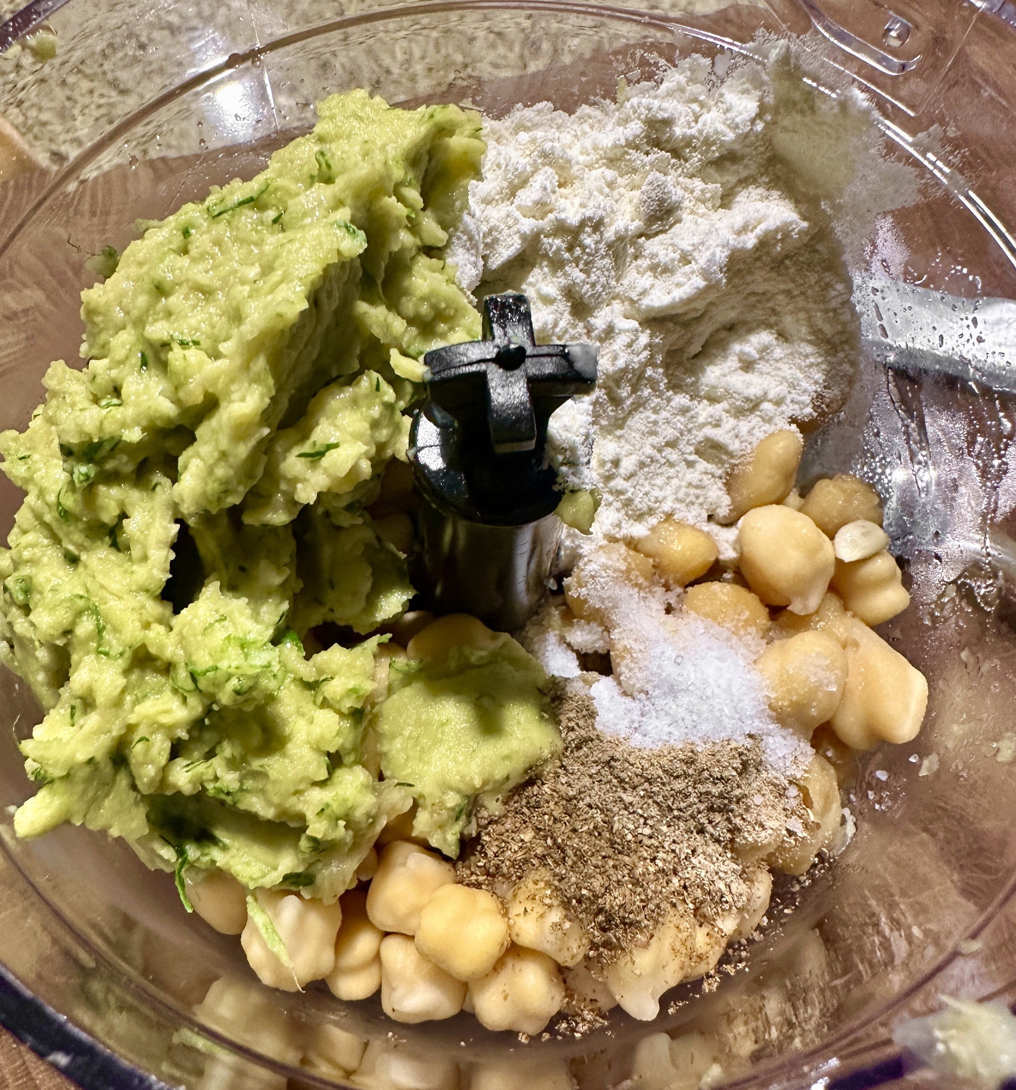 А дальше в дело пошел большой контейнер блендера. Засыпал в него весь мокрый нут. Посолил слегка. Тут лучше, если что, НЕДОсолить, чем…, поэтому буквально четверть «без верха», чайной ложки соли я взял. По чуть-чуть (исключительно сообразно личным вкусам) молотой зиры и молотого кориандра. Столовую ложку «с верхом» муки.