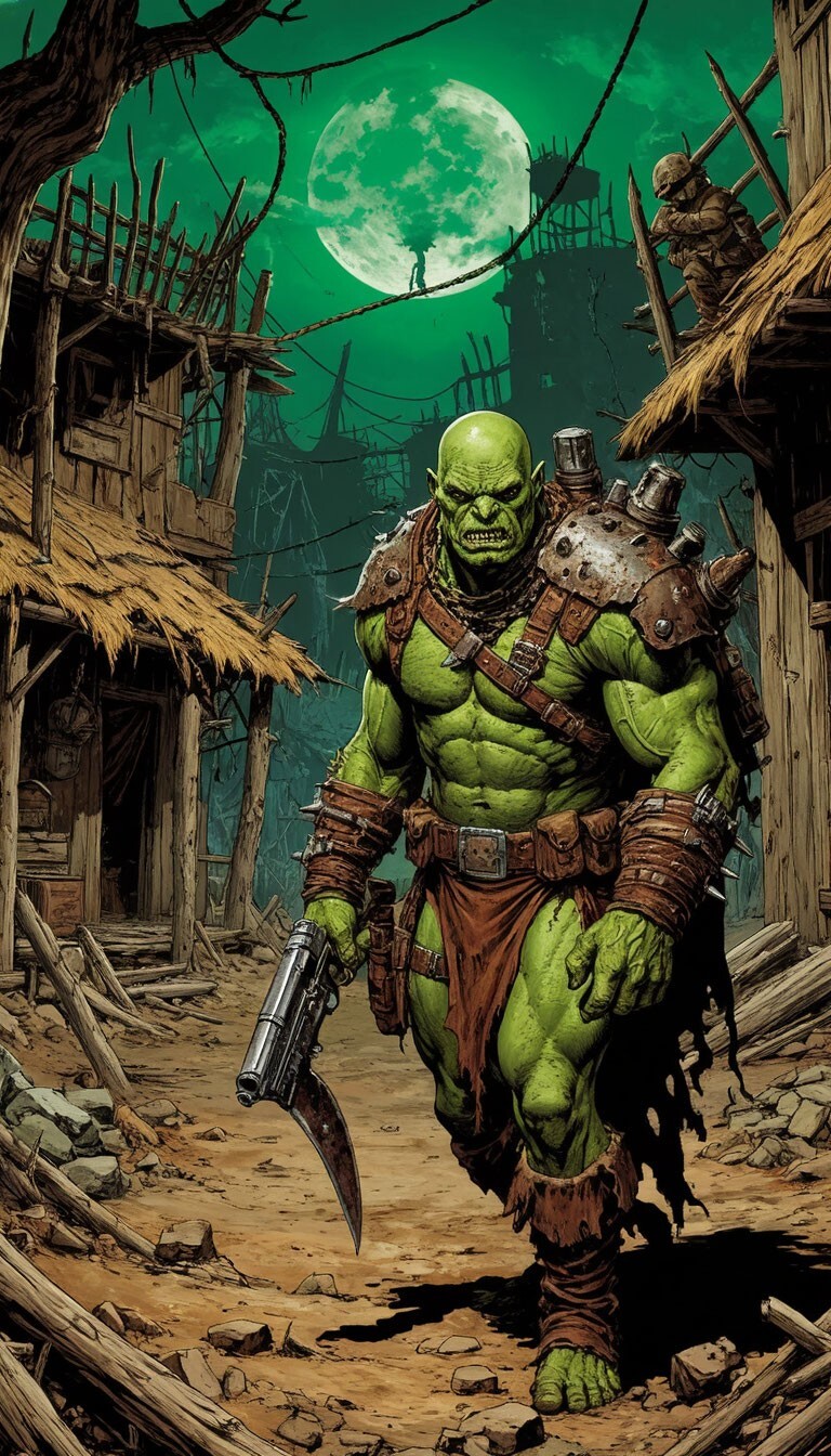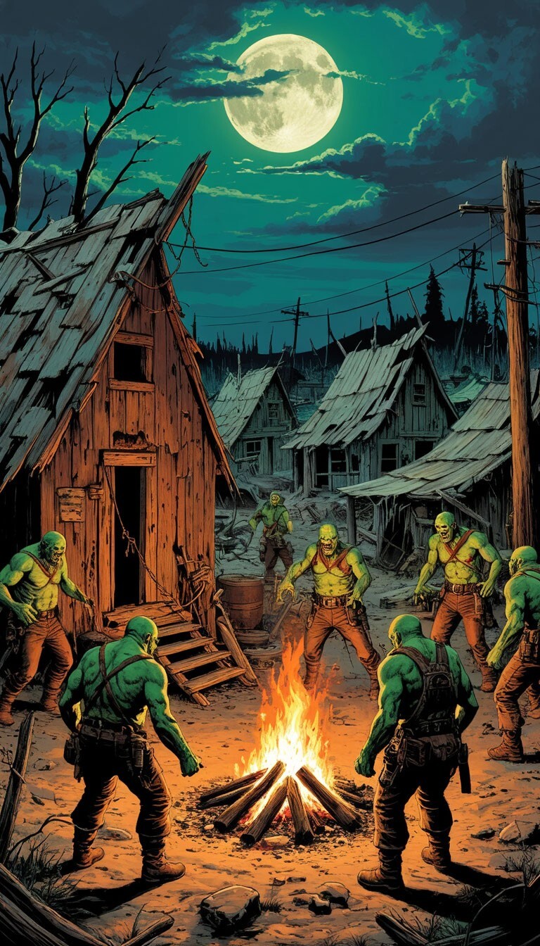 Супер-мутанты построили вокруг меня что-то вроде алтаря. Кости, черепа, ржавые шестерёнки, сложенные в кучу. Воняет, как от брамина, который сдох неделю назад. Они молятся мне, бормоча что-то невнятное, пока их вожак, здоровенный урод по кличке Гвоздь, размахивает дубиной, утыканной гвоздями. Они называют это ритуалом. Я называю это дебилизмом.