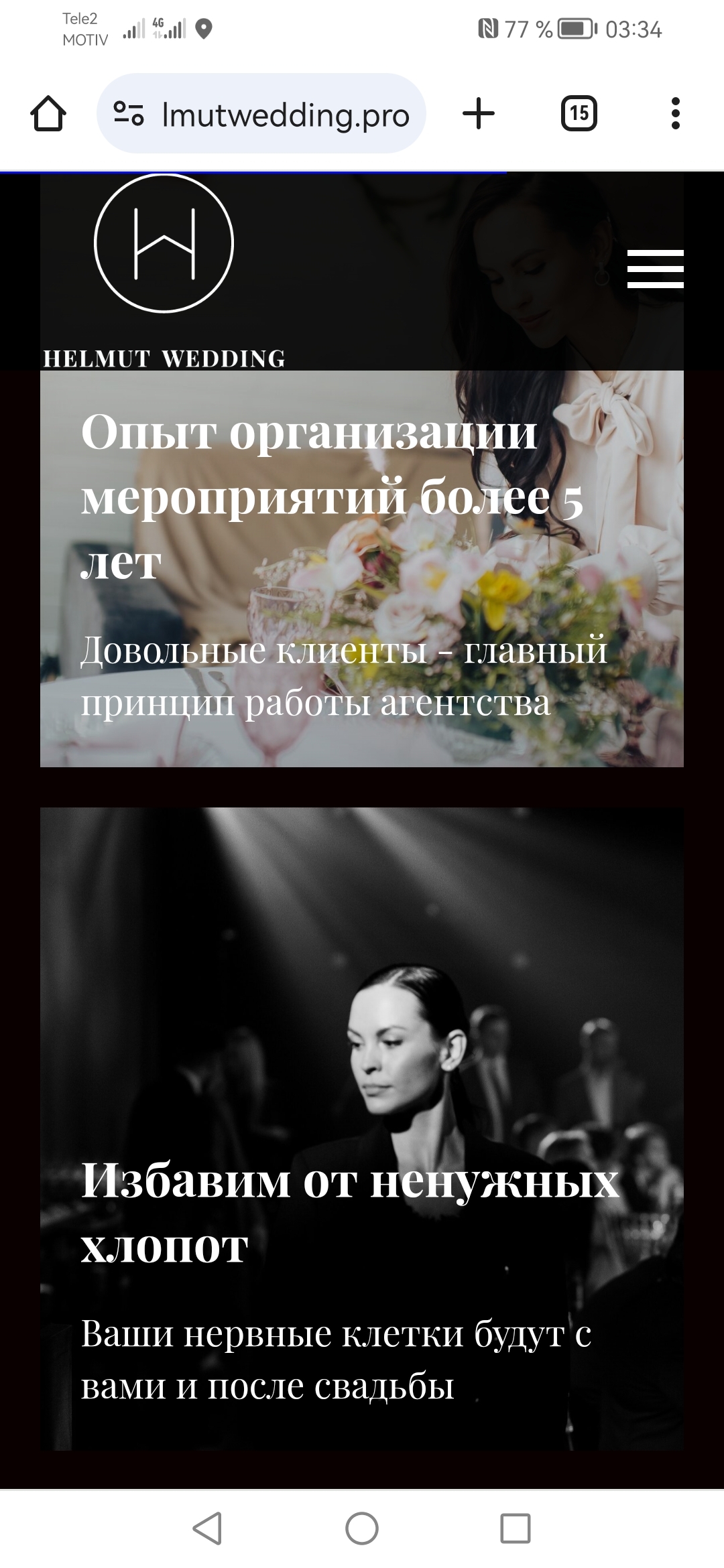 Решил я значит жениться. С ведущим вопросов не возникло, мы были знакомы достаточно давно, он уже проводил мероприятия которые я посещял и в его компетентности я не сомневался. Он и предложил мне на выбор несколько организаторов. Организаторов мы с супругой выбирали весьма интересным способом - по фамилии и выбрали девушку с красивой немецкой фамилией, буду называть её H. Алёна Гельмут https://helmutwedding.pro . Как бы смешно это не звучало, оказалось что фамилию она сменила специально для своей деятельности, а мы и повелись😁