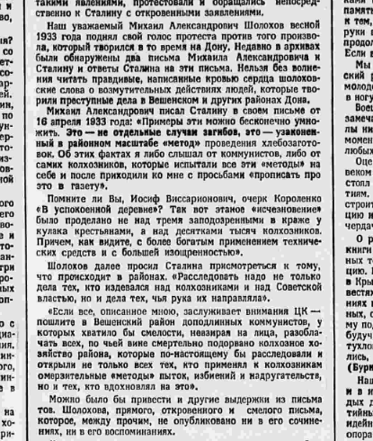 Сейчас активно антисоветчиками распространяется некое письмо Шолохова Сталину, в котором он описывает зверства "кровавого режима" при коллективизации.