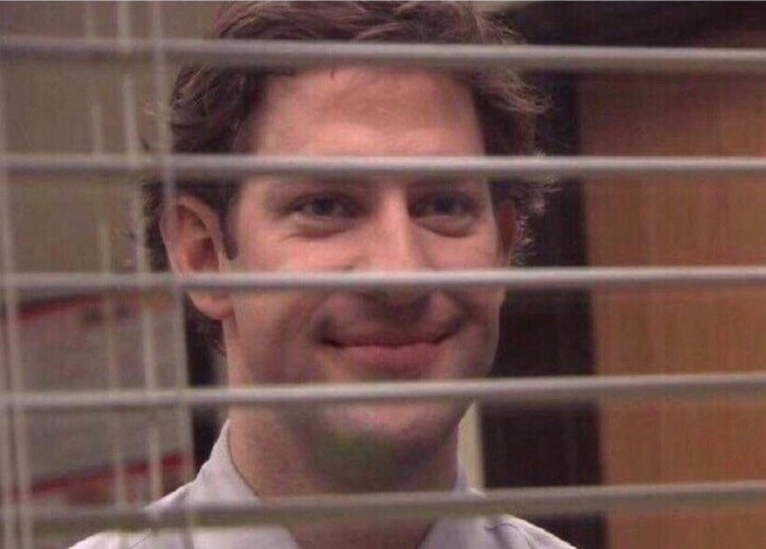 После многих лет съемок документальной командой сотрудники Dunder Mifflin принимают это как рутину, часто забывая, что вообще есть камеры - все, кроме Джима. Он единственный сотрудник, который постоянно проверяет камеру. Это дружеский жест или попытка сумасшедшего сохранить контроль.