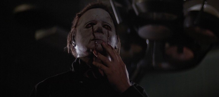 Для тех, кто не знаком с классикой слешеров, я расскажу коротко: первая полноценная смерть Майкла Майерса (не считая шести огнестрельных ранений и падения со второго этажа) происходит в к конце Хэллоуин II, после выяснения отношений со своей (как оказалось потерянной) сестрой Лори Строуд и неудавшимся психиатром Сэмюэлем Лумисом. Лори удается выстрелить Майклу в оба его глаза, а затем, для уверенности, Лумис взрывает комнату, оставляя Майкла, охваченного огнем. Несмотря на то, что есть еще несколько (десяток) фильмов с участием персонажа, вероятно, что это последний раз, когда мы видим настоящего Майкла Майерса в действии.