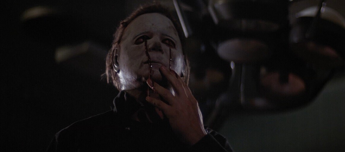 Так что это за жидкость? Смазка? Как бы то ни было, дело в том, что Майкл Майерс начинает изливать из себя подобную жидкость после того, как Пол Радд бьет его по лицу трубой в конце "Хэллоуин: Проклятие Майкла Майерса".