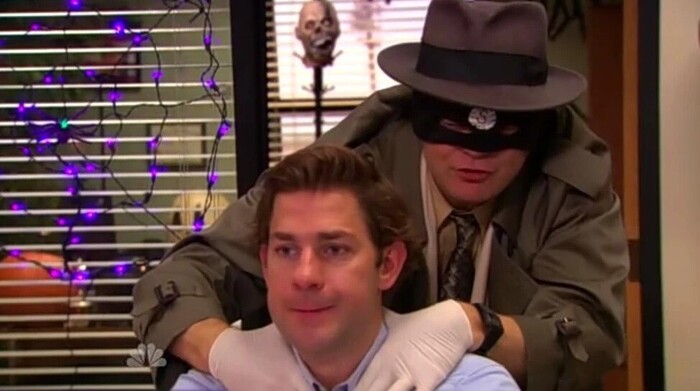Вспомним еще раз Хеллоуин и Дуайта в костюме Душителя. Джим отказывается наряжаться, заявляя, что он ненавидит костюмы, что было бы нормально, если бы мы не видели Джима, носящего разные костюма несколько раз на протяжении всего шоу.