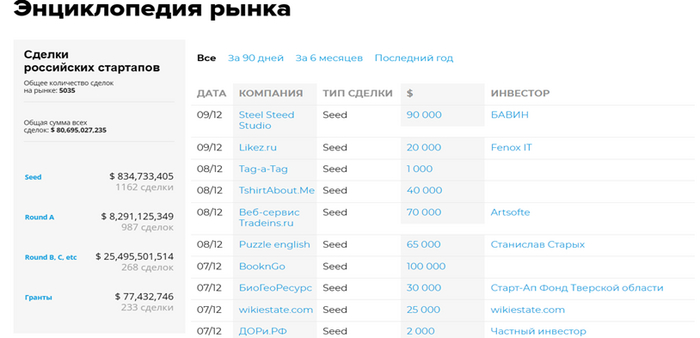 посмотреть цифры тут Энциклопедия венчурного рынка (rb.ru)