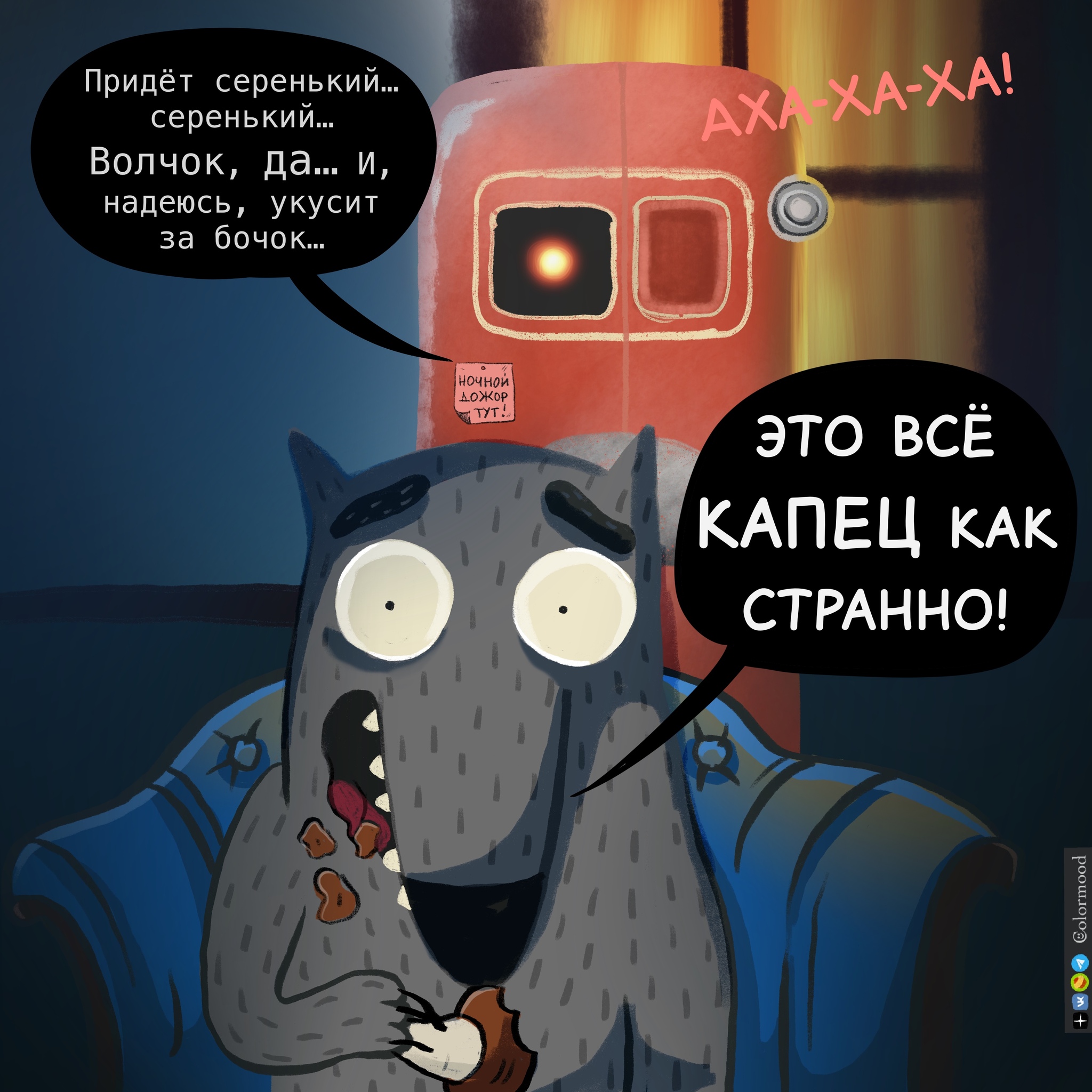 389 Colormood Комиксы от Colormood В гостях у Волчка Бедолаги Серия Фантики с Волчком Фантик #34 1 год назад Автор идеи: Денис Пак Иллюстрация : Colormood [моё] Волчок Бедолага Рисование Юмор Отсылка Atomic Heart Элеонора (Atomic Heart) 6 5 Ещё 0