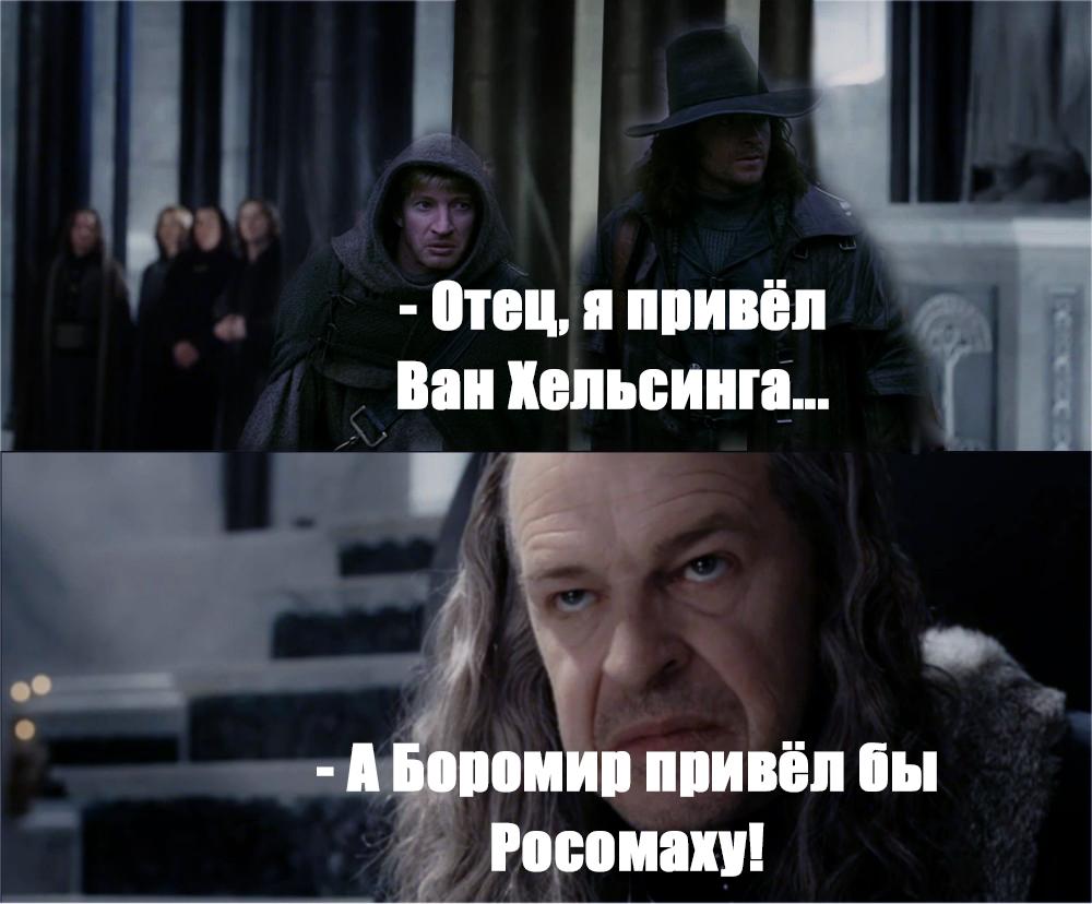 1521 wayneos Средиземье - мир Толкина Фарамир продолжает разочаровывать отца 5 месяцев назад Дэнетор Фарамир Боромир Мемы Фильмы Властелин колец Ван Хельсинг Росомаха (Люди Икс) Кроссовер Картинка с текстом 135 10 1 Ещё 0