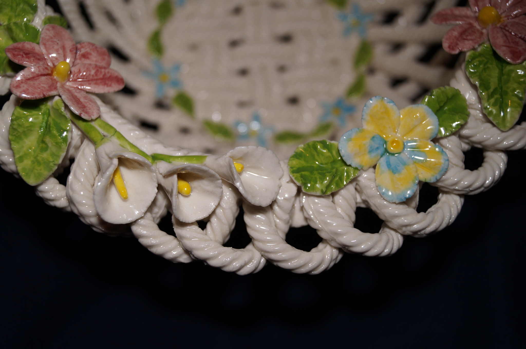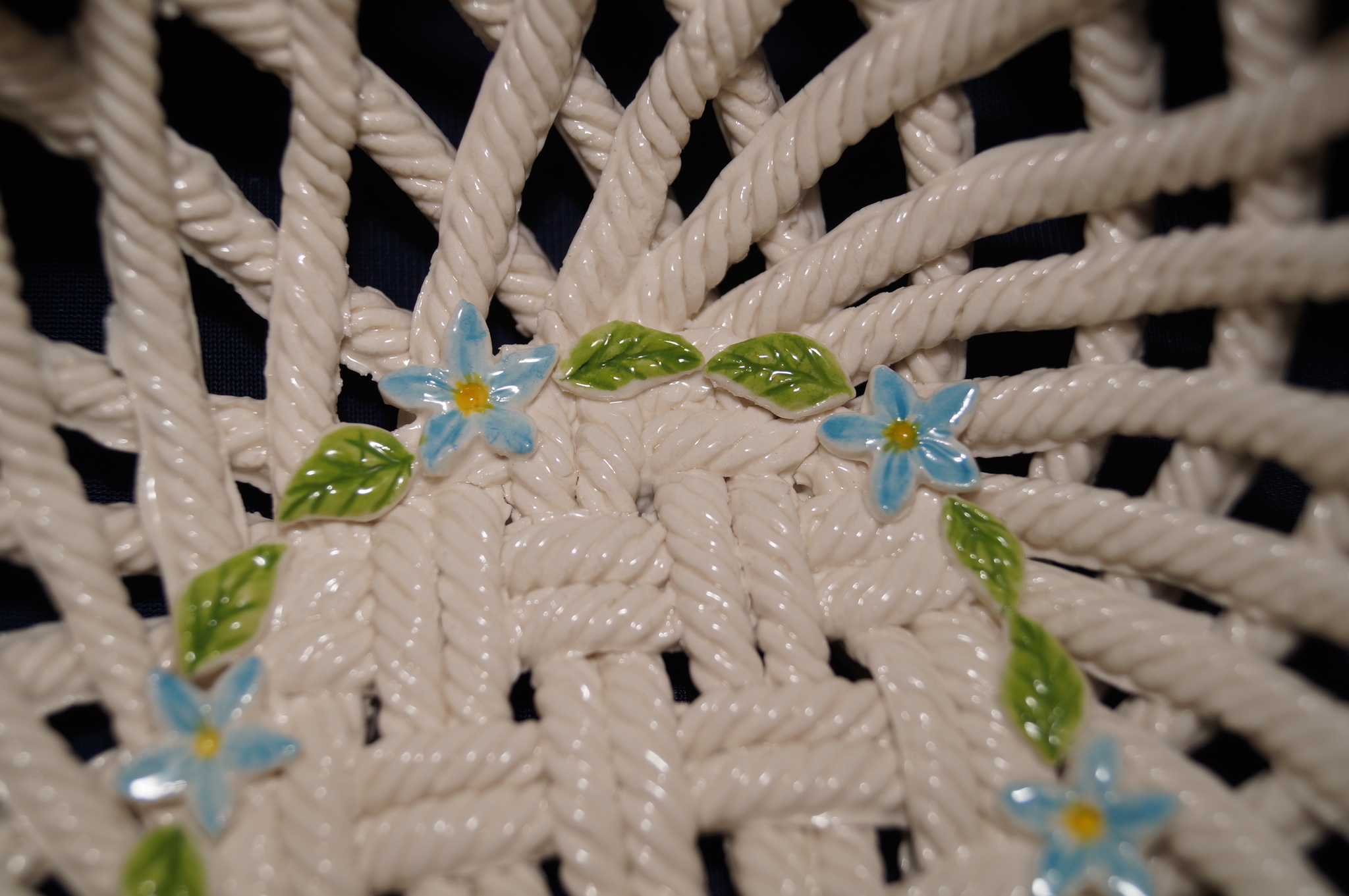 Как-то давно довелось мне увидеть необычайные фарфоровые корзиночки фирмы Bellek. Они произвели на меня глубочайшее впечатление, как и цена на них. И тут меня посетила гениальная мысль, сделать конфетницу своими руками. Сказано - сделано. С фарфоровым шликером я работать умею, муфельная печь есть в наличии, однако имелось одно "НО"...я не знаю, какой расходник выбрать для подобных работ. Все же в магазине для керамистов удалось найти подходящий фарфор и понеслась.... Если считать в человекочасах, то только на лепку этой конфетницы ушло 18 часов. Удалось мне сделать то, что хотелось? Да, только это трындец, как сложно и дело не в самой лепке, а в сушке и обжиге. Важно высушить так, чтобы вся эта конструкция не треснула, а потом обжечь, чтобы во время глазурного обжига корзинка не деформировалась. Удача это или умение - проверю на следующей конфетнице.