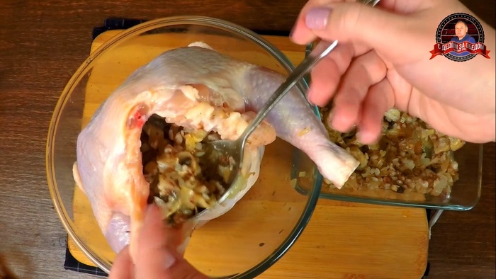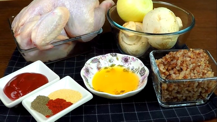 Предлагаем приготовить курицу фаршированную гречкой и грибами. Запеченная курица в готовом виде получается сочной, ароматной, с нежным и сытным гарниром. А запахи на кухне стоят великолепные! Блюдо не затратное, а выглядит шикарно! Советуем приготовить такую курицу - это очень аппетитно, ароматно и невероятно вкусно.