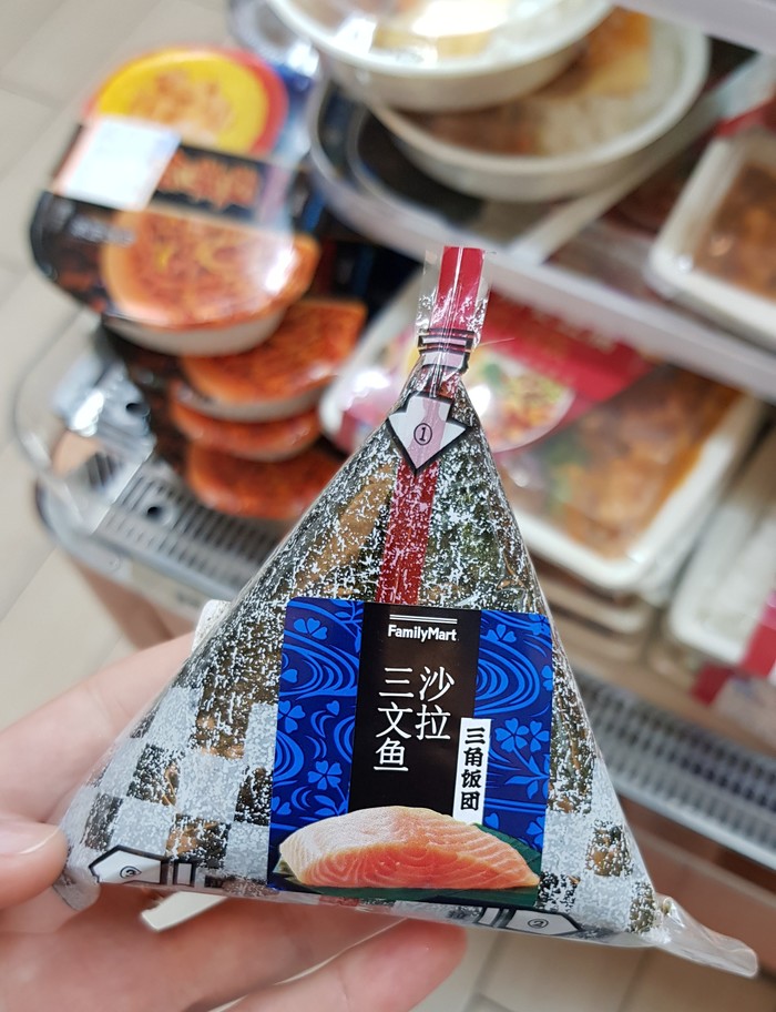Онигири (я так понимаю, что это японское блюдо, но в китае встречается повсеместно) - это рис, обернутый листом нори с рыбой (мясом) внутри. По вкусу очень похоже на суши