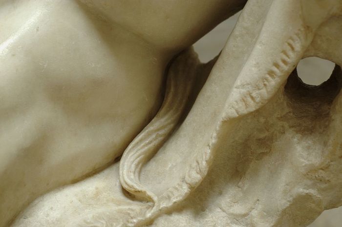 Более того, когда скульптуру откопали в Риме в новое время, она была сильно покоцана: не хватало правой ноги, частей обеих рук и кое-где фрагментов головы. Восстанавливали ее, наращивая согласно своей фантазии, недостающие части, лучшие скульпторы эпохи барокко. Была даже версия, что среди них был даже великий Бернини. То есть фантазия и любовь к телесности была огого какая мощная.
