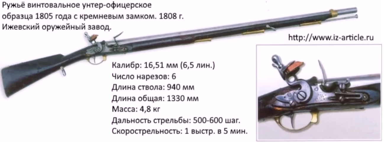 Помимо гладствола у нас были ещё и нарезные штуцера. Из-за нарезов штуцер бил дальше и точнее, поэтому его ствол мог быть короче. Штуцера стояли на вооружении у егерских полков, так любимых Барклаем де Толли.