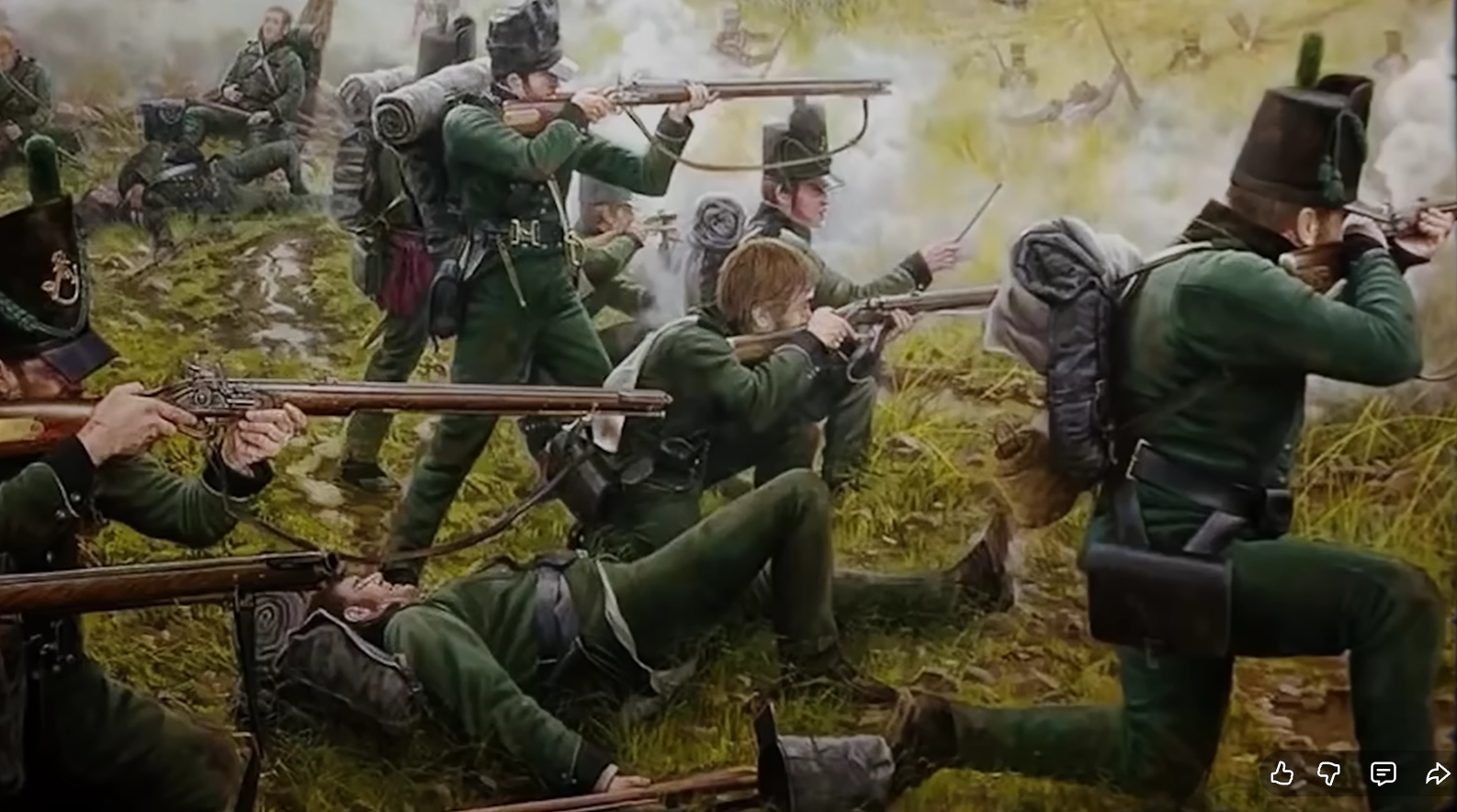 Сейчас вам многие долбодятлы напоют, что точность у ружей была никакая и поэтому солдаты собирались в линии, и стреляли по другим линиям, потому что иначе хрен попадешь. То есть предки наши были конченные дураки и специально собирались кучнее, чтобы и по ним легче было попасть. И противники их такие же были. Или адреналиновые наркоманы, или конченные суицидники, да?