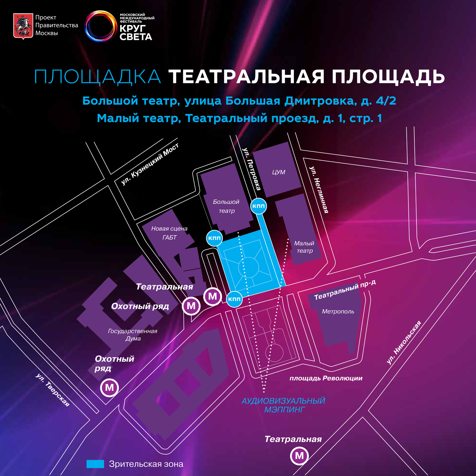 На фасаде Большого театра зрителей ожидают новые работы в жанре классического архитектурного видеомэппинга. Участники продемонстрируют искусство взаимодействия 2D-3D-светоцветовых проекций на физическом объекте городской среды с учетом его геометрии и местоположения в пространстве.