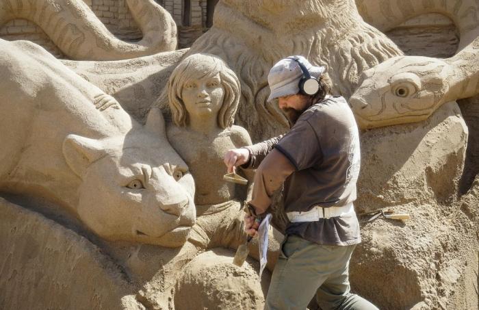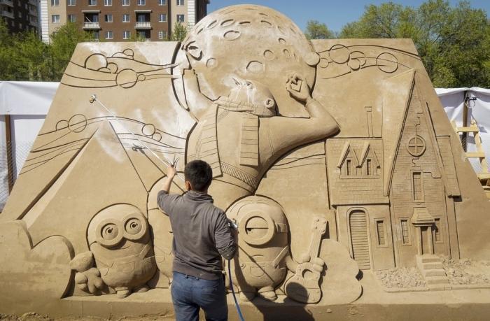 11 художников-скульпторов из России и Украины собрались продемонстрировать свое мастерство на фестивале скульптур из песка “Песочные фантазии” в г. Алматы, Казахстан. Зрителям представят 14 скульптурных композиций, среди которых будут: миньоны, трансформер, Кинг-Конг, персонажи из "Ледникового периода", "Аватара", "Звездных воинов", "Игры престолов" и многие другие. Самой масштабной скульптурой фестиваля станет песочный замок Нойшвайнштайн, высота которого составит 7 метров. Для создания всего это великолепия понадобилось больше 1500 тонн песка, это более 100 КамАЗов. Скульптуры покрывают смесью клея и воды, что бы уберечь от дождя и ветра. Фестиваль стартует 23 апреля, песочные герои простоят как минимум полтора месяца.