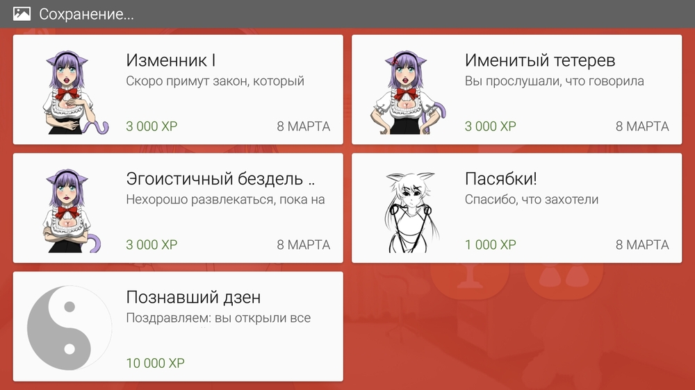 Чтобы разбавить горечь проигрыша, как и планировал, снабдил каждую концовку достижением. А каждое достижение "за концовку" симпатичной тян. (которые и разбавляют текст в этом посте)