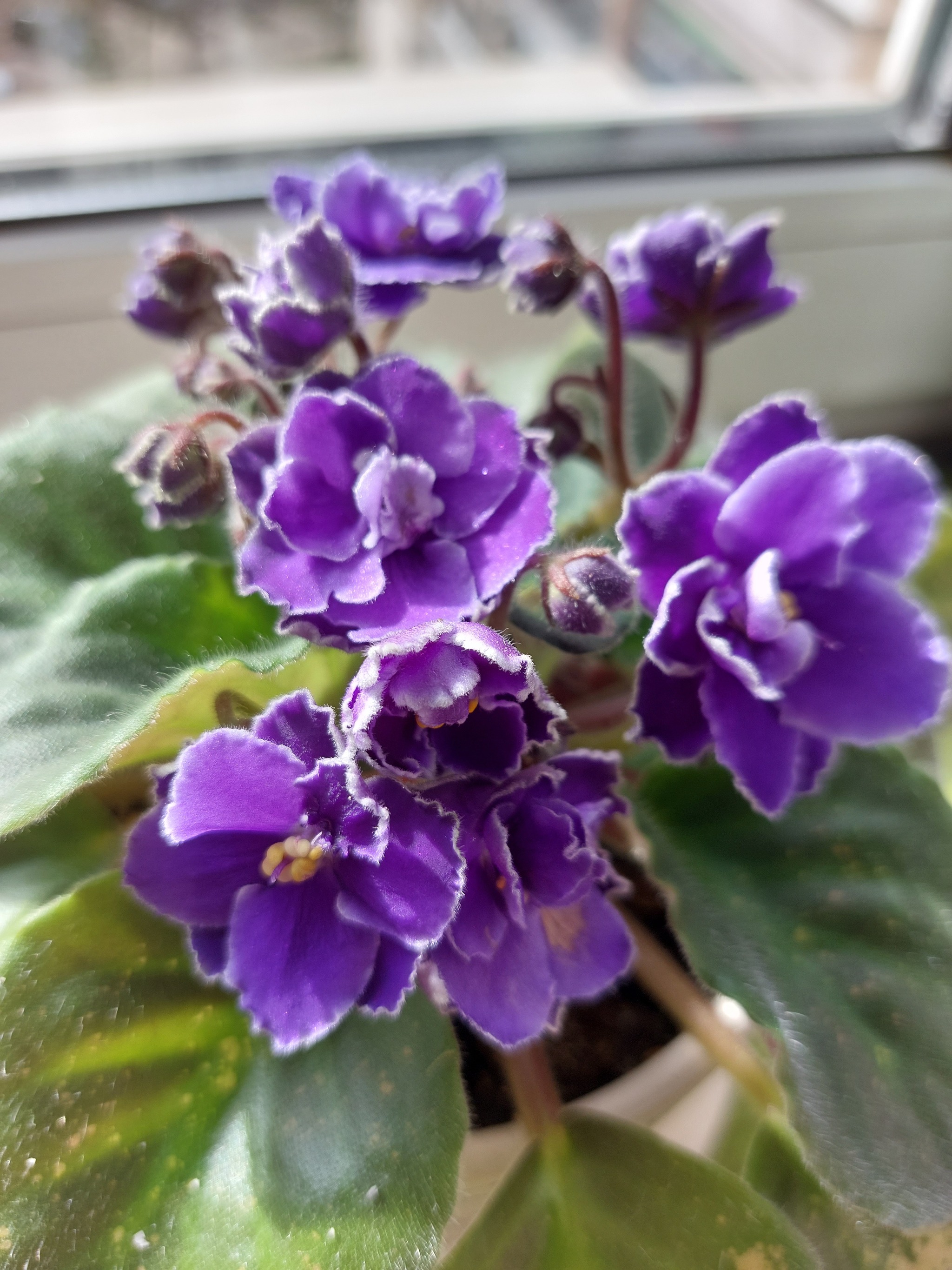Хочу поделиться с вами моими подобранными питомцами) светленькую я купила у бабушки возле магазина. Так она мне приглянулась своими пышными листочками, что не смогла пройти мимо и забрала) вот уже второй год радует меня буйным цветением. Постоянно приходится обрезать нижние листочки, очень густо и раскидисто растёт) последнюю обрезку поставила в воду, надеюсь размножить это чудо. А вторая скромница жила в подъезде, кто-то из соседей решил поделиться. На улице была зима, в подъезде холодно и сыро, поэтому я её пожалела и забрала. В благодарность спустя четыре месяца моя красавица расцвела.