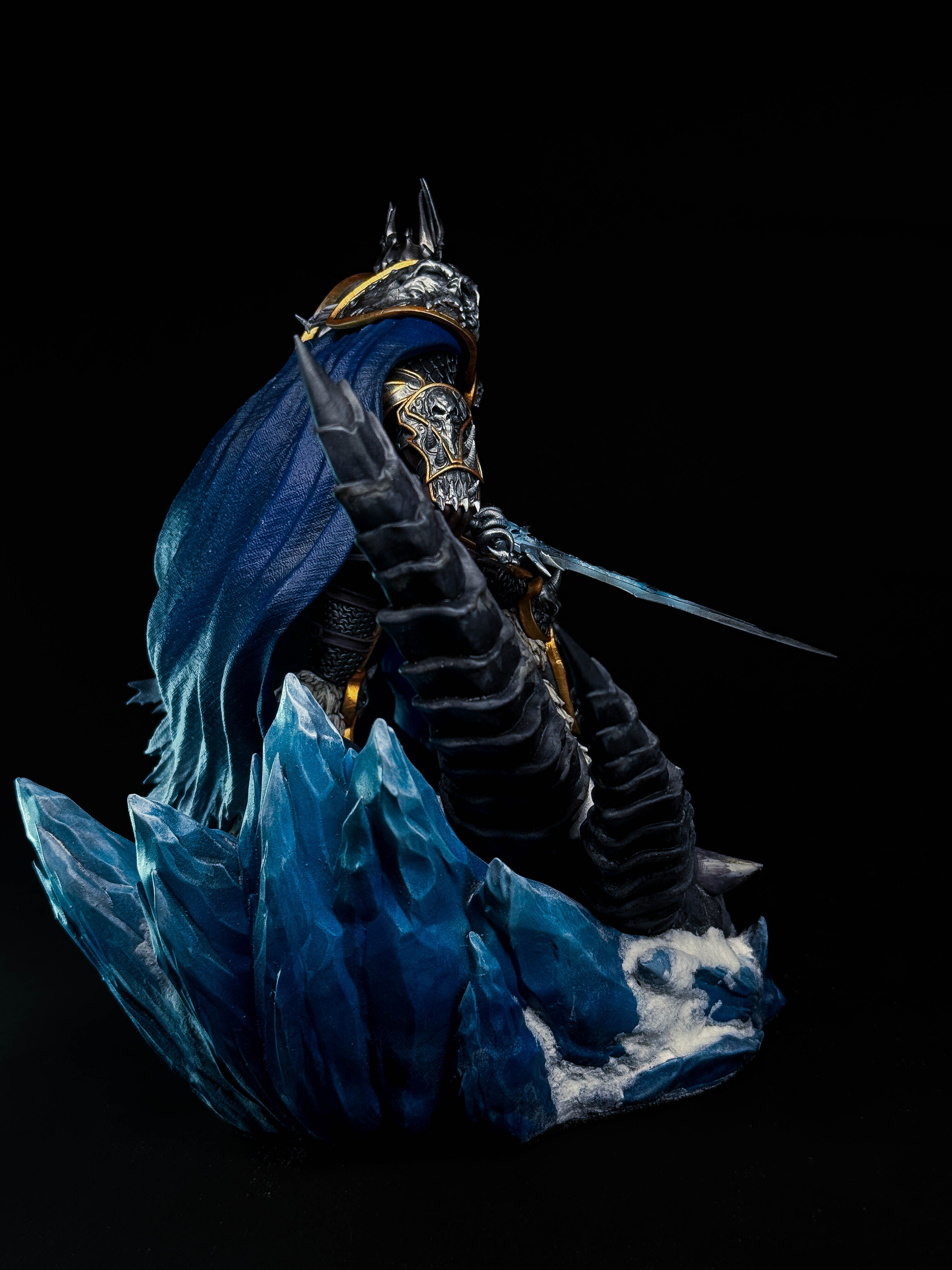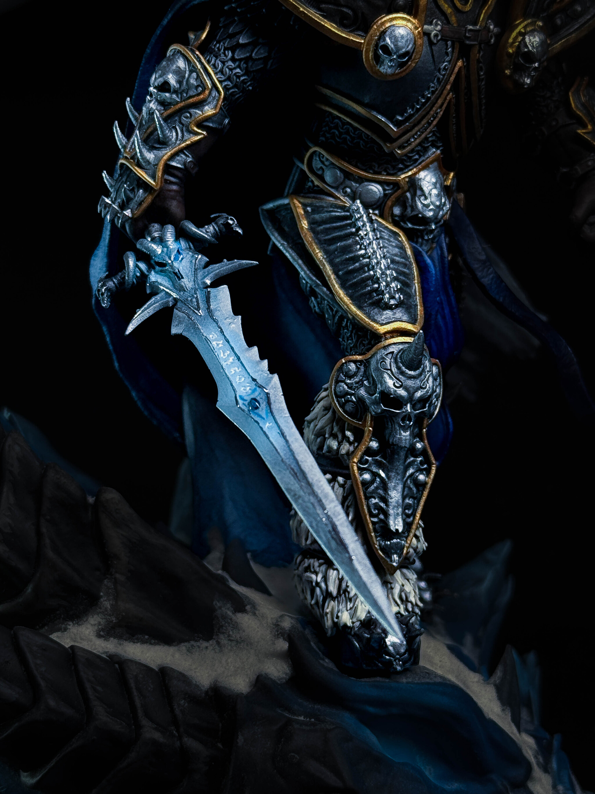❄️ Сделали эту фигурку с душой: детально проработанная броня, ледяной меч и череп Синдрагосы в роли подставки. Всё расписано вручную — от заснеженных рун до светящихся глаз под шлемом.