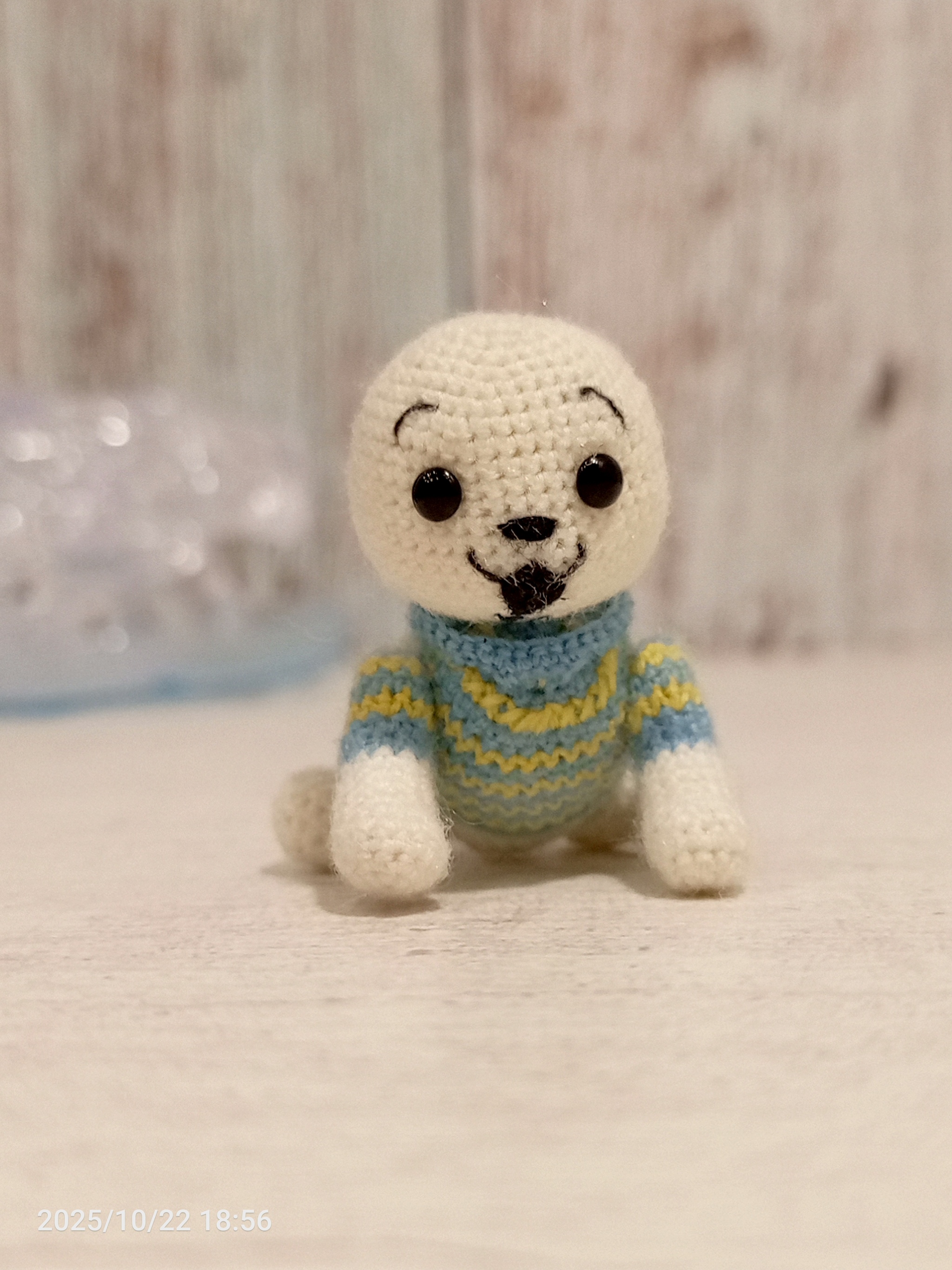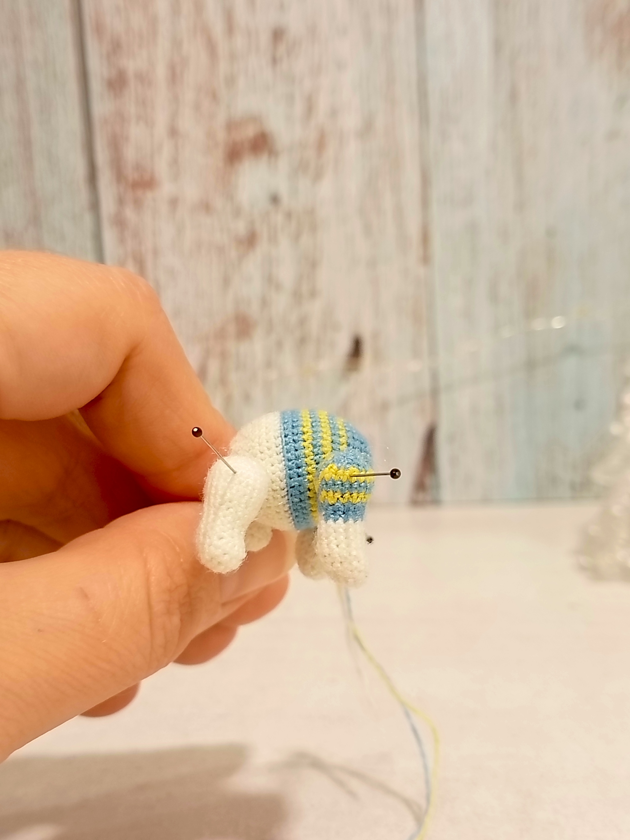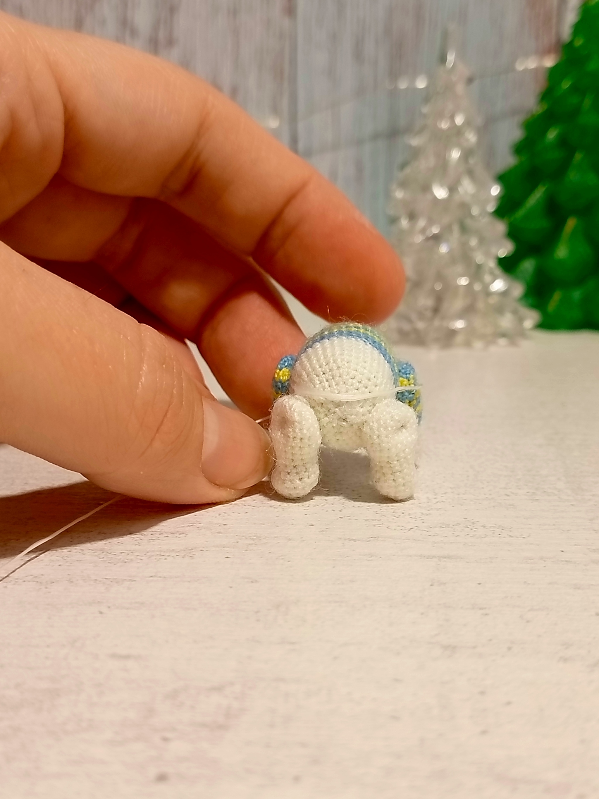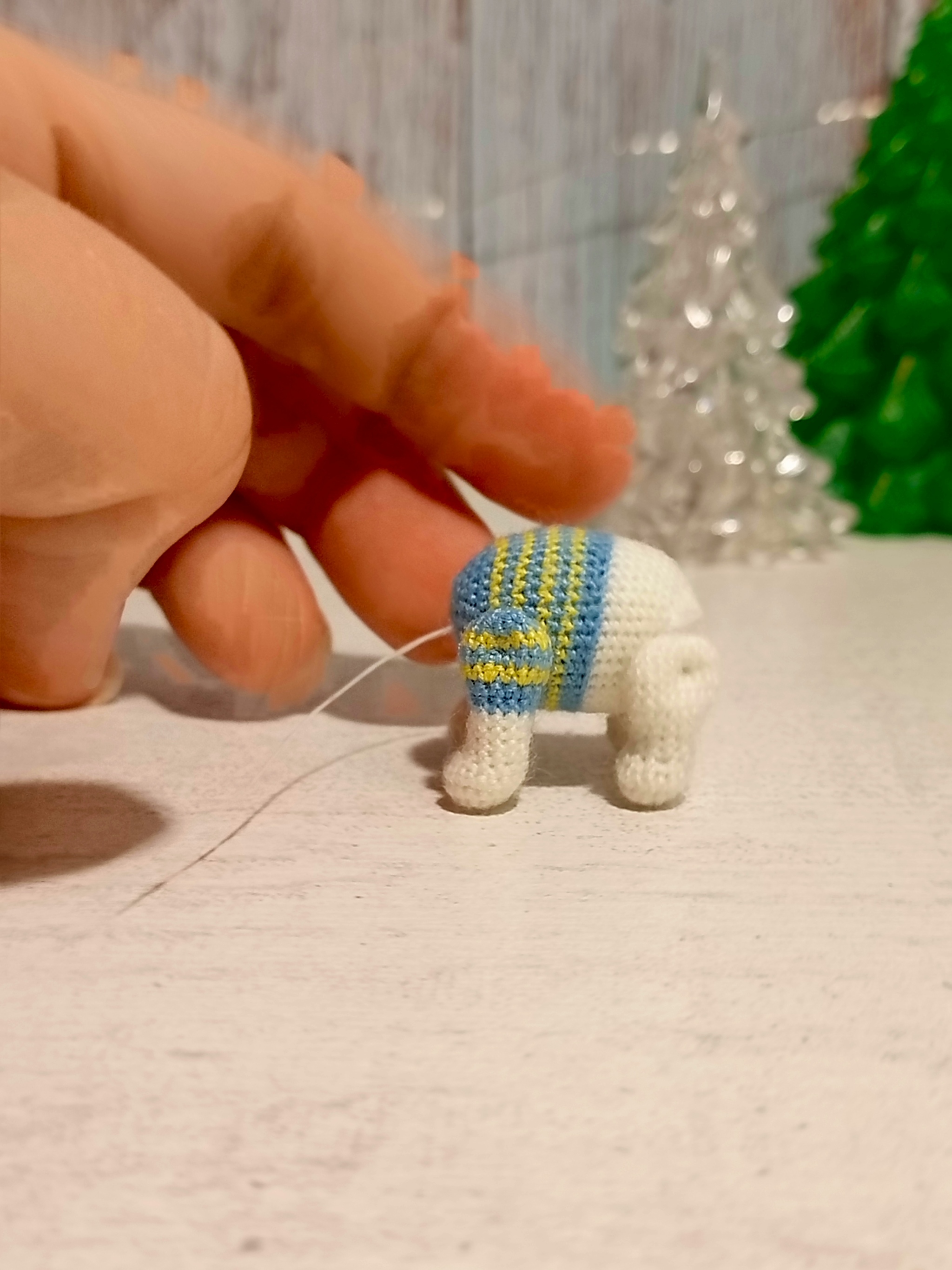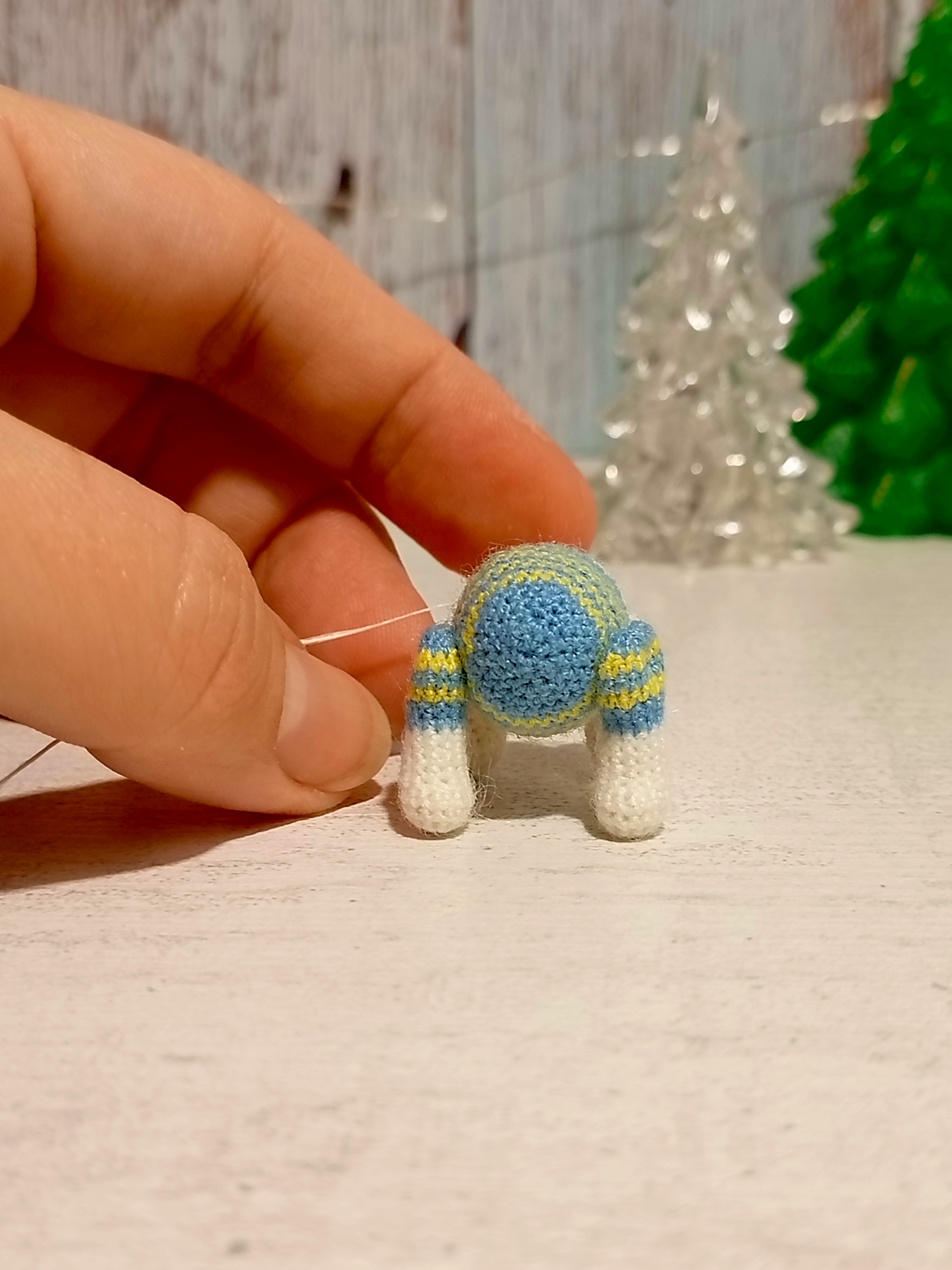 В итоге перевязала туловище сделала его на 6 сбн короче в окружности, и длиннее на несколько рядов. Пришила ноги (нитяное крепление), вот что получилось