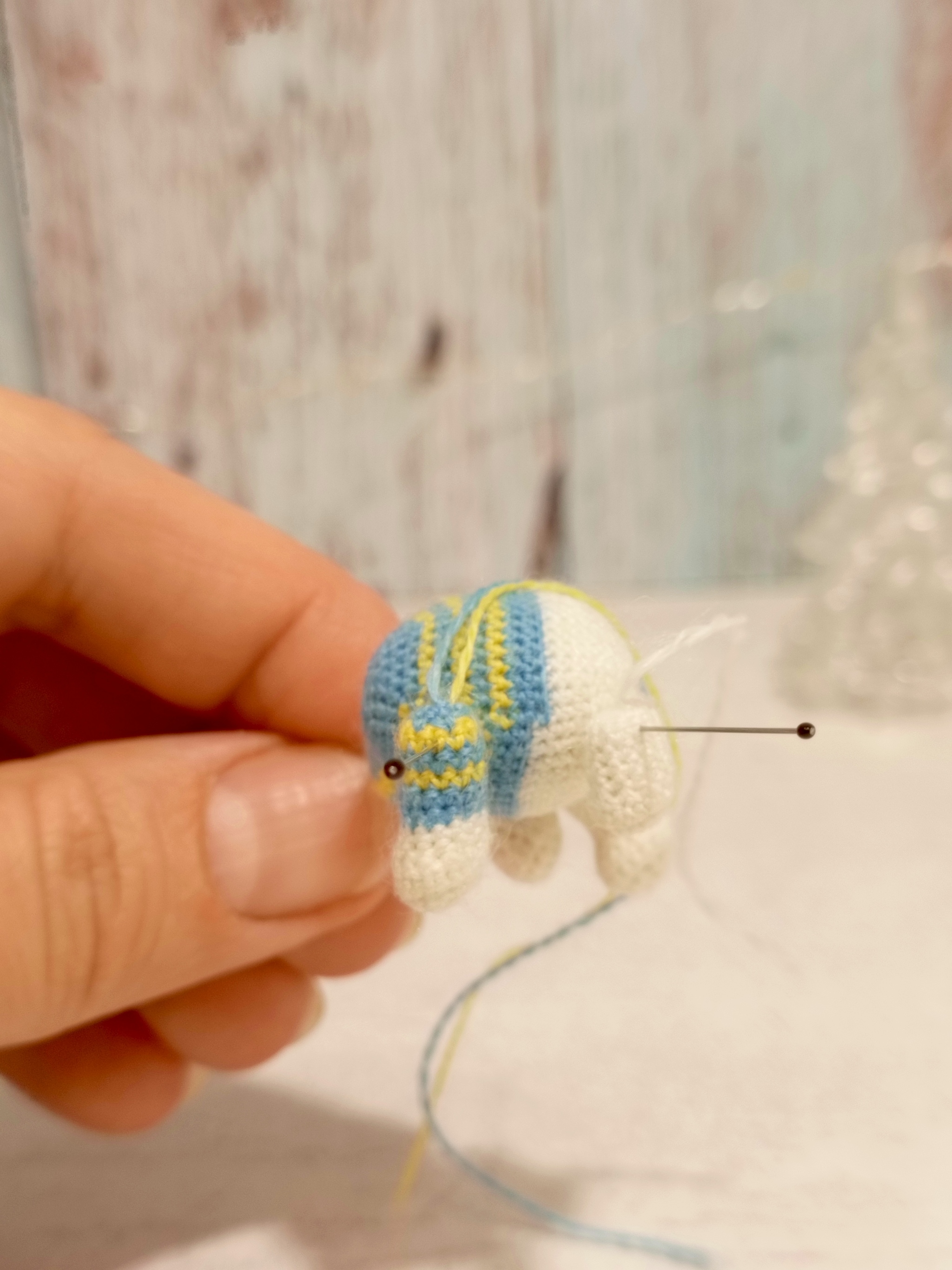 Потом приступила к голове, так как у оригинала голова достаточно крупная, пришлось вязать голову покрупнее, вот что получилось